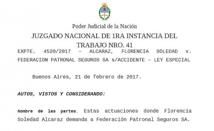 El juez subrogante del Juzgado Nacional del Trabajo N° 41, Alejandro Aníbal Segura, dictó la inconstitucionalidad del Decreto de Necesidad y Urgencia N° 57/2017 publicado en el Boletín Oficial, que exige, con carácter obligatorio y excluyente, a los trabajadores que sufran un accidente de trabajo iniciar un procedimiento administrativo ante las Comisiones Médicas Jurisdiccionales, antes de promover una demanda ante el Poder Judicial.Según el fallo difundido por el diario <a href="http://www.ambito.com/">Ámbito Financiero</a>, el magistrado alegó que resulta contrario a la Constitución y los Tratados Internacionales de igual jerarquía. Asimismo, fundó que esa limitación impide una "acción judicial expedita" para los trabajadores, lo que justifica su "inconstitucionalidad".Adelantó, además, que su criterio "no se modificará un ni un ápice" cuando se publique la ley, dado que mantiene la misma exigencia que el DNU.Abogados constitucionalistas y del ámbito laboral ya habían cuestionado en declaraciones a este medio el uso del DNU por parte del presidente Mauricio Macri, luego de que se publicara el decreto que modifica la ley de Aseguradoras de Riesgos del Trabajo (ART), por considerar en este caso que es "inconstitucional" y que no existen "circunstancias excepcionales" que lo justifiquen.Cabe recordar que la cámara de Diputados sancionó el 15 de febrero de este año el proyecto que modifica la ley de Riesgos del Trabajo, con el que Casa Rosada prevé dinamitar la denominada "industria del juicio". Sin embargo, la misma no fue promulgada como así tampoco fue derogado el decreto 54/2017.La ley establece el "carácter obligatorio y excluyente" de las comisiones médicas -una de primera instancia y otra central, de apelación- para el inicio del trámite administrativo tras un accidente laboral. Si se acepta esta mediación, lo decidido se convertirá en cosa juzgada. Si no, se podrá activar la vía judicial.No obstante, los trabajadores que no estén registrados podrán acceder al litigio desde el principio. Además, las ART deberán compensar a obras sociales que otorguen atención a trabajadores accidentados, y ante incapacidad se tomará el mejor sueldo o un promedio de los últimos meses, entre otros cambios."La comisión médica jurisdiccional deberá expedirse dentro de los 60 días hábiles administrativos, contados a partir de la primera presentación debidamente cumplimentada", aunque dicho plazo "será prorrogable por cuestiones relacionadas con la acreditación del accidente de trabajo o de la enfermedad profesional debidamente fundadas".Fuente: ambito.com