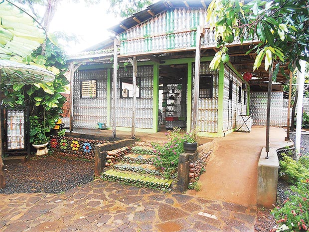 Casa de Botellas nació hace casi 20 años gracias al ingenio de un matrimonio que decidió hacerle frente a la crisis del 2000. A pesar del paso del tiempo el proyecto sigue generando inquietudes y Alfredo Alberto Santa Cruz (65) continúa compartiendo sus conocimientos y experiencias entre aquellos que se interesan en la temática, que son muchos. Las invitaciones llegan desde distintos puntos de Sudamérica, además de las visitas que realizan al prototipo que se ubica en el barrio Las Orquídeas. Electricista de profesión confió que como muchos argentinos tuvo que buscar una alternativa para resolver los problemas económicos que se venían presentando. Y en la zona de frontera “estaba muy duro porque se formó una cadena impresionante de ‘no puedo pagarte’. Entre hacer un trabajo y querer cobrarlo, uno se terminaba peleando con el cliente porque tampoco tenía recursos. El problema era que el comerciante ya no fiaba. Tuve que buscar una alternativa para juntar dinero, saldar todas las cuentas y seguir dando de comer a mi familia. Lo más inmediato que se me ocurrió fue ir a juntar residuos (latas de aluminio, botellas plásticas, cartones)”. Admitió que fue un tiempo difícil “porque sentíamos la mirada de desprecio”. Y para minimizar ese impacto, empezaron a llamarse Soldados ecologistas, porque “hacemos el trabajo de muchos que destruyen el planeta. Habíamos resuelto el deseo de mi hija de tener su casita y nos dimos cuenta que la técnica que descubrimos podía servir para hacer una casa más grande”. Una habitación de 3,50 x 4 fue el prototipo desarmable con el que Santa Cruz empezó a viajar por Misiones y parte del Norte. “Esa casa nos enseñó que podíamos formar conciencia ambiental por un lado y ayudar a la gente que vive en condiciones de extrema precariedad, que vive con plásticos negros como techo, cartones como paredes, duermen sobre diarios. La técnica se fue desenvolviendo con la idea que además de la casa fabriquemos los muebles (cama, mesa, sofá, armario). Fuimos creciendo y a medida que avanzamos, comenzamos a recibir visitas, invitaciones para dar charlas y mostrar lo que habíamos descubierto”, contó orgulloso. En la actualidad son 76 construcciones hechas por voluntarios porque “la idea de mi trabajo es dejar formados voluntarios para que después se genere un efecto multiplicador. La mayor cantidad se levantaron en Argentina pero también las hay en Colombia, Ecuador, Brasil, Paraguay. Gracias a eso tenemos un reconocimiento internacional y estamos en primer lugar en el mundo en los buscadores de Internet. Compartimos la técnica de manera gratuita para que la gente además de usar los residuos pueda resolver sus problemas”. El interés de los turistas permite que los Santa Cruz tengan recursos para seguir investigando lo que es posible hacer con basura. “Desarrollamos unos 300 productos, demostrando que es posible transformar la basura en cosas útiles que se pueden comercializar y ganar dinero; la descarga de agua a la canaleta hecha de botellas, tejas, taburetes, juguetes, adornos. Eso ayuda a sustentar el proyecto Casa de Botellas porque no tenemos ayuda del Estado. Con lo que podemos vender vamos sobreviviendo y seguimos con el compromiso de dar cursos gratis en los lugares donde somos invitados”, señaló este santafesino que se radicó en Puerto Iguazú hace más de 40 años. La familia ya no habita la Casa de Botellas pero con la obra “provocamos y demostramos que a pesar de la adversidad y la situación difícil que nos toca vivir de vez en cuando, existen mecanismos para salir. Hay que poner empeño. No te podés quedar llorando porque nadie te va a solucionar el problema”. “Me siento cómodo, feliz, y amo mi Casa de Botellas”, dijo Santa Cruz, quien recibe consultas desde de Sudáfrica, Nepal, India, Uganda.