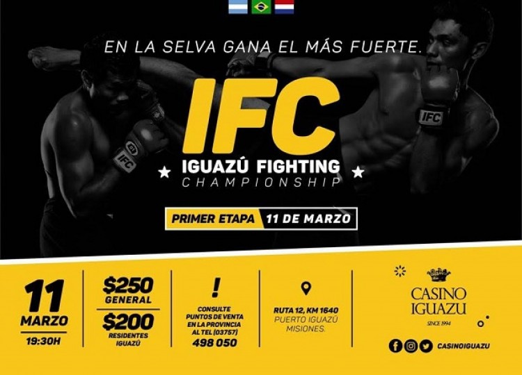 Será en el estacionamiento del Casino Iguazú, donde se acondicionará una carpa con capacidad para más de 1.000 espectadores y la jaula.En esta competencia, en la modalidad MMA (Mix Marcial Arts), se disputarán tres combates en la categoría hasta 77 kilos y otros tres en la categoría hasta 94 kilos, donde los ganadores de cada combate pasarán a la segunda ronda. Esa noche, completará la cartelera del espectáculo un combate femenino en la categoría hasta 57 kilos.Participarán profesionales que se encuentran ranqueados entre los mejores de sus respectivos países: Argentina, Brasil y Paraguay. El torneo será fiscalizado por la Federación Argentina de Artes Marciales Mixtas y Kick Boxing y el World Boxing Union Sudamerica.Esta es la primera vez que el Casino Iguazú tendrá un espectáculo con estas características, en el cual la adrenalina y los golpes estarán presentes en la jaula, asegurando un excelente espectáculo de las artes marciales mixtas. El viernes 10 a las 17:00, en el Café Magic Bar, se llevará a cabo la ceremonia de pesaje, con la finalidad de darle seriedad a los combates. El sábado, el acceso al predio estará habilitado a partir de las 19:30 y las entradas tendrán un costo de 250 pesos (general) y $200 para residentes en Puerto Iguazú.