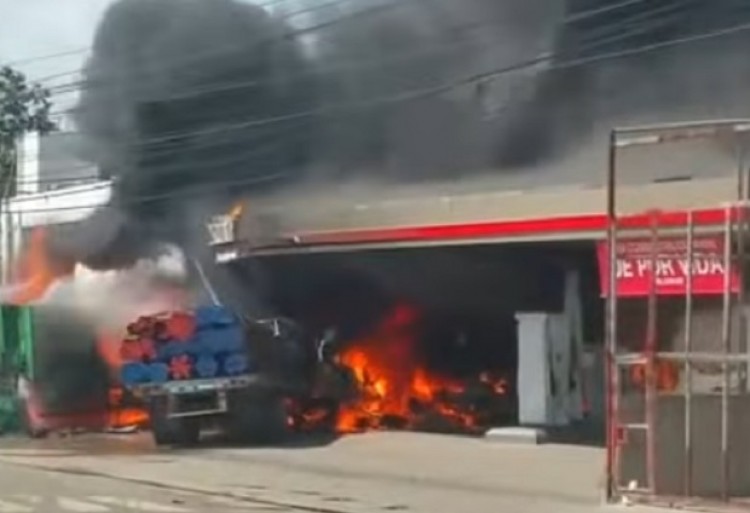 El incidente se registró en el municipio de Santo Domingo Oeste, próximo a la capital del mencionado país caribeño.Varias cámaras de seguridad registraron todo lo ocurrido, lo que permite apreciar el susto que vivieron los involucrados en la situación.Todo comenzó cuando un camión cargado de varillas, aparentemente perdió los frenos, y embistió contra otros vehículos que estaban esperando la luz verde para avanzar en un cruce de calles con semáforos.La velocidad y el peso del rodado hicieron que el mismo se llevara por delante a varios automóviles y fuera luego a parar contra una estación de servicio, donde se incendió.El pánico cundió entre quienes estaban en el lugar y se ve en los vídeos como todos comienzan a correr, presas de la desesperación.La rápida intervención de tres carros de bomberos permitió evitar una desgracia aún mayor.Fuentes: <a href="http://www.hoy.com.py/">diario Hoy</a> (Paraguay) y <a href="https://actualidad.rt.com/">Actualidad RT</a> (Rusia)