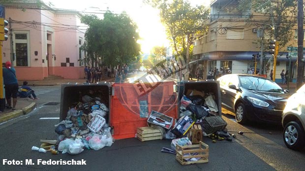 Los distinto puntos de la ciudad donde está interrumpido el tránsito son las calles Rivadavia (entre Sarmiento y Bolívar); San Martín (entre Buenos Aires y 3 de Febrero) y 3 de Febrero (entre San Martín y Bolívar).En tanto que en zona de Villa Cabello, está bloqueada la calle Fermín Fierro (entre López y Planes y Tacuarí).También está bloqueada la avenida San Martín, entre Alem y Urquiza, punto donde gomas quemadas obstruyen el paso vehicular.En diálogo con PRIMERA EDICIÓN, el secretario general de los municipales, Daniel Porto, comentó que la medida de acción directa se decidió en asamblea, este miércoles por la noche, tras la fallida reunión con las autoridades.Con respecto al tiempo que durarán los reclamos, Porto manifestó que "seguramente vamos a estar el fin de semana" y agregó que "hoy (por ayer) presentamos un petitorio oficial, más allá de la plata que le interesa a todos los empleados también hay pases con relación, pases a titulares, artículo 7 y muchos otros ítems, son más o menos cinco o seis pedidos que tenemos y hasta ahora no nos contestaron nada. Lo que pretendemos hoy es que quien ingrese hoy a la Municipalidad entre ganando por lo menos con 14 o 15 mil pesos. Contando los tickets, el que menos gana es 11 mil u 11.200 pesos, si les sacamos los tickets faltan 7.500 pesos más o menos. Estamos lejos de la realidad".Sin embargo, el gremialista recalcó que "lo que garantizamos desde el gremio son los servicios esenciales" como por ejemplo la atención en los "Caps o en el cementerio, hay que avisar a los vecinos que nosotros garantizamos esos servicios".En diálogo con Radio República, Fabián Florentín, secretario de gobierno comunal aseguró que
