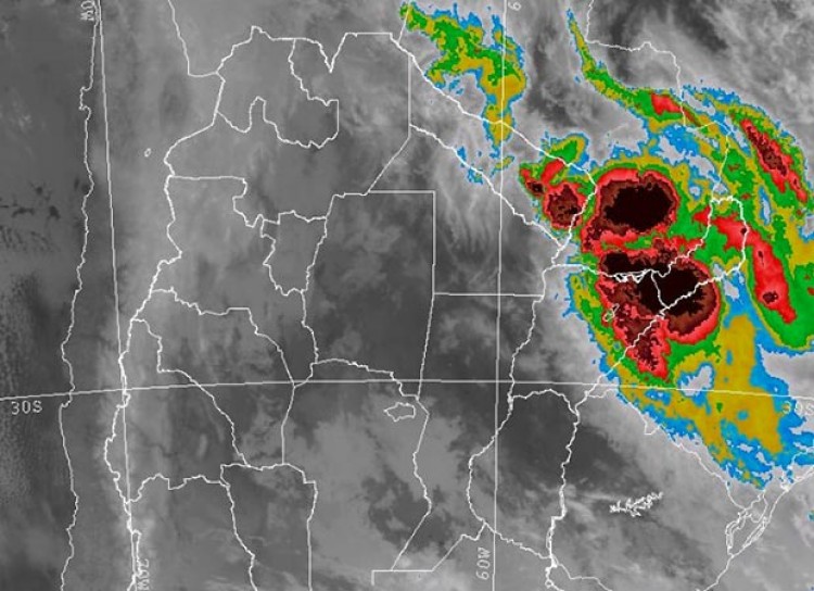 Sobre el área de cobertura es desarrollan áreas de lluvias y tormentas, de las que se prevé que algunas sean localmente fuertes o severas, acompañadas de fuerte actividad eléctrica, ocasional caída de granizo y especialmente abundante caída de agua en cortos períodos y ráfagas intensas.Las condiciones tenderán a mejorar de sur a norte durante este sábado.