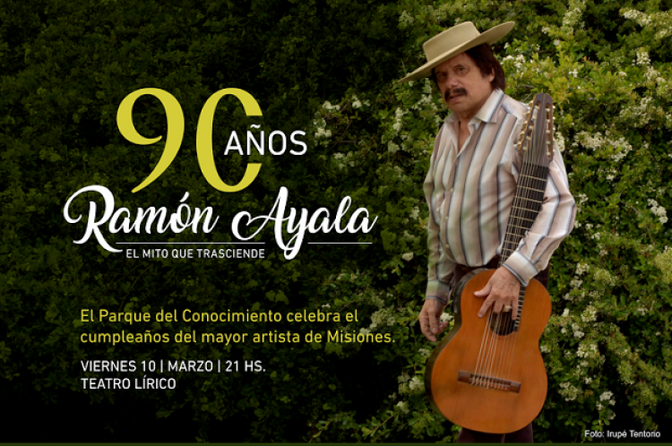 El espectáculo comenzará a las 21:00 en el Teatro Lírico, con las actuaciones de la Orquesta de Música Popular, Coro Estable, Ballet Folklórico, Ballet Clásico, Legado Regional, Coro de Niños y Proyecto Late, a los que se sumarán los artistas Karozo Zuetta y Nerina Bader y la coreógrafa y bailarina Mónica Revinski. Además,compartirán escenario artistas locales como Cacho Bernal, Joselo Schuap, Los Nuñez, Leandro Yahni, Gastón Nakazato, Gervasio Malagrida, Osvaldo de la Fuente y el grupo vocal Enarmonía, entre varios más. El mismo viernes, en la Sala de Prosa, a las 19:00, se presentará el CD que grabaron músicos del Parque junto a Cecilia Phal el 30 y 31 de mayo de 2009 en el Teatro de Prosa, en el marco del Ciclo Homenajes “Los duendes de Ramón Ayala”. Participaron en esta grabación la Orquesta de Cámara del Parque del Conocimiento y el Coro Universitario de Misiones, ambos dirigidos por el Maestro Emilio Rocholl, además de músicos invitados, todos bajo la dirección musical y arreglos de Edgardo Chino Rodríguez.Por su parte, la Biblioteca Pública de las Misiones presentará una muestra literaria y de videos sobre Ramón, que estará abierta durante una semana a partir del viernes 10, y el Centro de Arte presentará una exposición especial de pinturas de Ramón Ayala propiedad de colecciones privadas y de instituciones provinciales, todas cedidas especialmente para la muestra. También se adhiere el espacio Incaa con material didáctico en video para distribuir en establecimientos educativos de la provincia.Finalmente, el Taller de Artes del Fuego producirá obras especiales en honor a Ayala y realizarán un mapping especial el mismo viernes en los muros del Parque, mientras desde en la pantalla del cine Imax del Conocimiento se reproducirán imágenes de la vida y obra del artista antes de cada película de su cartelera programada para el próximo fin de semana.