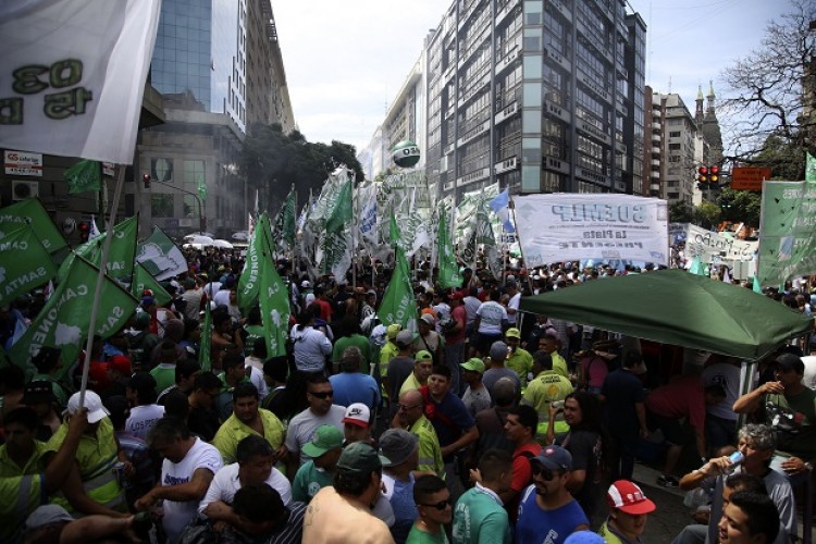 En medio del tumulto se pudo observar a miembros del gremio de Camioneros y a su secretario general, Pablo Moyano, que se retiraban rápidamente de la zona en medio de una fuerte custodia.Los incidentes se produjeron en momentos en que los integrantes del triunvirato Héctor Daer, Juan Carlos Schmid y Carlos Acuña se aprestaban a bajar del escenario montado frente al Ministerio de Producción y algunos militantes pertenecientes a UPCN reclamaban "fecha para el paro general"."La fecha ya está puesta: si el Gobierno no rectifica sus medidas, los primeros días de abril habrá un paro de 24 horas", había dicho previamente Héctor Daer al cerrar el acto.Fuente: NA