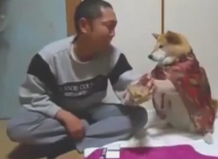 El perro de este chino sabe perfectamente que el alcohol es malo.El hombre, entre lamentos, amaga con beber un poco de whisky, pero cada vez que va a agarrar el vaso, el perro le pone las patas sobre el brazo para que lo deje inmediatamente.