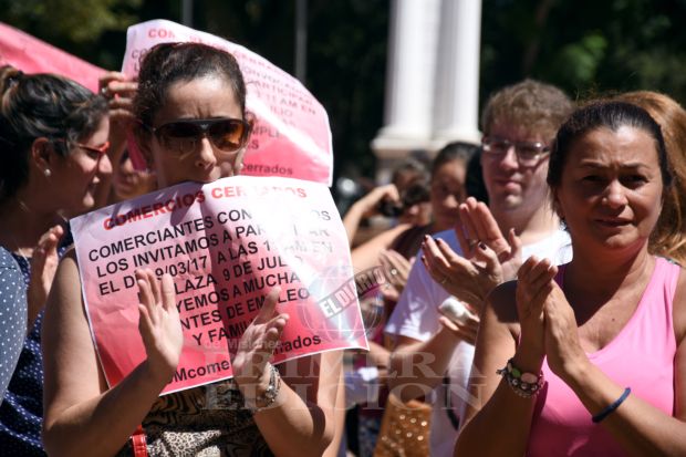 Numerosos propietarios y empleados comerciales se reunieron en la plaza 9 de Julio, donde reclamaron una urgente reducción impositiva, ya que "prácticamente el 50 por ciento del costo total es destinado tributar", precisó Fabio, dueño de una zapatería posadeña. Los dos temas principales de la pacífica marcha que realizaron los comerciantes fueron una rebaja impositiva para competir con Paraguay -aunque muchos sostienen que esto es imposible por los bajos costos en el país vecino- y la necesidad de contar con un sistema aduanero especial, similar al que tiene Tierra del Fuego y que la pone en mejores condiciones de competitividad.Otros de los planteos que hicieron los comerciantes, en busca de soluciones a esta altura "mágicas", es llevar el plan Ahora 12 a todos los días de la semana. "Es un plan de cuotas que ayudó mucho a repuntar algunos rubros, por eso consideramos que sería una buena medida para acercar más clientes", dijo Tatiana Busch a PRIMERA EDICIÓN. Hubo críticas para todos lados, desde pedidos de auxilio a la Nación, bajando a la Provincia y el Municipio. Aseguran que la mayor culpa es por las políticas económicas implementadas por el Gobierno nacional, pero también recordaron que la presión impositiva en Misiones "es insostenible". Fotos: J.C. Marchak