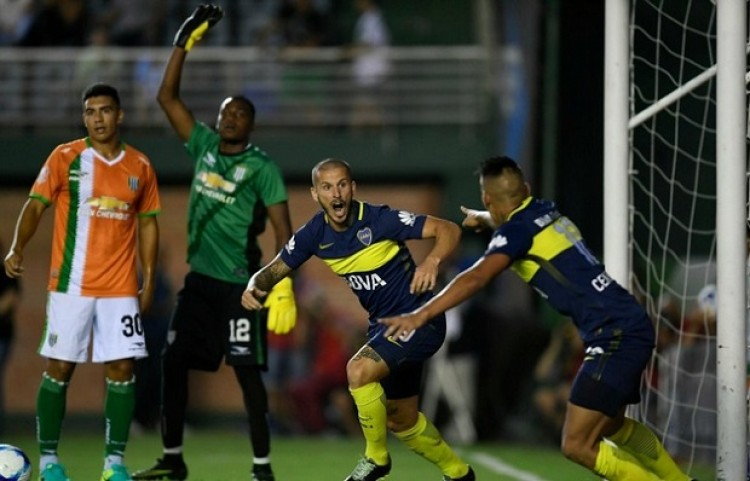 Boca reafirmó su liderazgo en el torneo de Primera División, tras superar este sábado por la noche por 2 a 0 a Banfield, en el estadio Florencio Sola, en un partido correspondiente a la decimoquinta fecha.El delantero Darío Benedetto, a los 15 minutos del primer tiempo y a los 18 del segundo, marcó los goles del elenco "xeneize", que alcanzó los 34 puntos, tres más que el escolta San Lorenzo.Un minuto antes del primer tanto boquense, el árbitro Darío Herrera le anuló mal un gol al atacante local Darío Cvitanich por una posición adelantada inexistente. Cuando se jugaba tiempo de descuento, fue expulsado en Boca el mediocampista colombiano Sebastián Pérez, que había ingresado apenas minutos antes. Fuente: NA