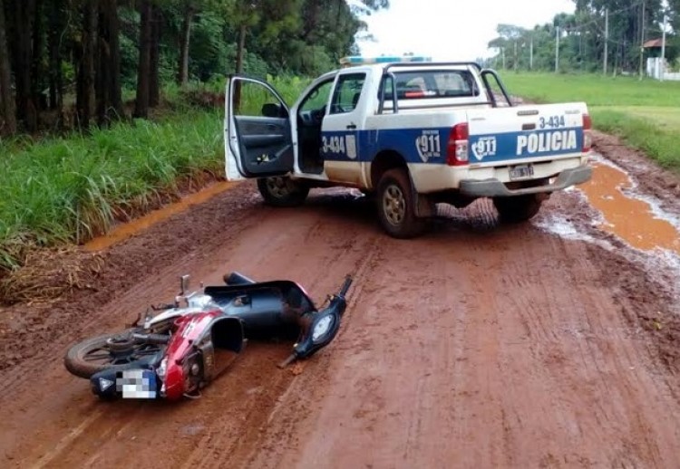 A las 17:00 la Policía tomó conocimiento de la sustracción de la motocicleta y pudo observar todavía en la zona a dos personas a bordo del motovehículo, por lo que se inició una persecución por la avenida Mitre.En la intersección de dicha arteria con la calle Moreno, los prófugos advirtieron la presencia de los uniformados, por lo que abandonaron el rodado y se dieron a la fuga en otro, una Gilera de 110 cc, apuntando con un arma de fuego al móvil policial.En el trayecto los motociclistas perdieron el control de la moto y cayeron, circunstancia en la que se pudo proceder a su detención. Los jóvenes fueron identificados como Juan N. (23) y Claudio R. (18).Uno de los detenidos sufrió lesiones y fue trasladado al hospital Madariaga de Posadas para su atención.Además, se les incautó un revolver calibre 22 además de la motocicleta Keller de 110 cc que habían sustraído. Trabajó en el episodio personal de las comisarías de Candelaria, Profundidad, seccional 5ª de Garupá y Comando de la Unidad Regional X.