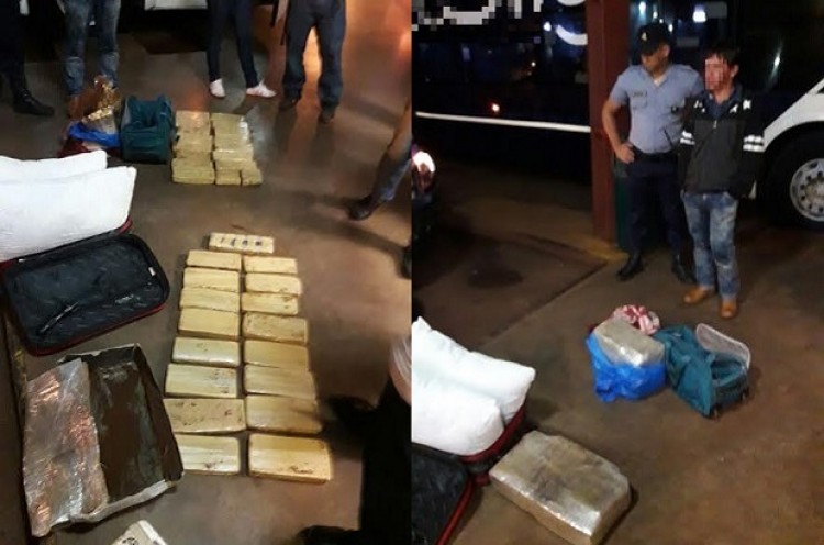 En la continuidad de un trabajo de inteligencia en terminales de ómnibus de toda Misiones y en áreas utilizadas estratégicamente por "mulas" narcos, la Policía de Misiones concretó el sábado el tercer golpe consecutivo en una semana contra el narcotráfico, en su modalidad "narco valijas". Alrededor de las 19:30 de ese día, en la estación rodoviaria de Eldorado, situada en el Kilómetro 9, investigadores de la Unidad Regional III frustraron las intenciones de al menos dos individuos que ya estaban despachando valijas cargadas con marihuana en el baúl de un colectivo con destino a Buenos Aires.Uno de los sospechosos logró darse a la fuga, en tanto que su cómplice fue atrapado en el lugar y fue identificado como Héctor C.P., de 31 años y nacionalidad paraguaya.Toxicomanía constató que había 30 paquetes de marihuana de máxima pureza distribuidas en dos valijas, que arrojaron un peso total de 28 kilos y un valor estimado de 70 mil pesos.