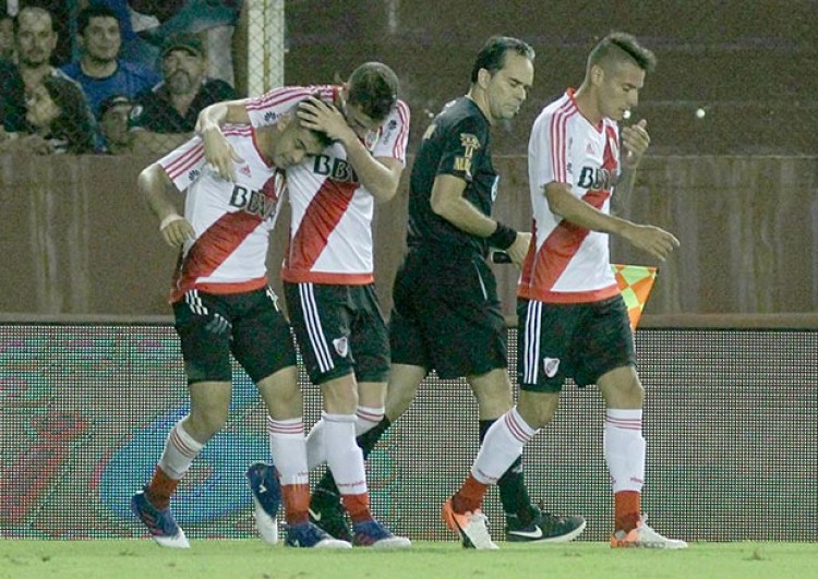 Antes del inicio del match se sucedieron algunos incidentes ya que varios simpatizantes intentaron ingresar con entradas falsificadas y de la refriega quedaron como saldo 7 heridos, 15 detenidos y destrozos en comercios aledaños al reducto. José Sand inauguró el tanteador a los 34 minutos del primer tiempo para el dueño de casa mientras que Ariel Rojas logró emparejarlo a los 3 del complemento para el "Millonario". Gonzalo Martínez, a los 33 minutos de la segunda etapa y Carlos Auzqui sobre el final del tiempo reglamentario, cerraron la cuenta para la visita. Los primeros diez minutos mostraron una neta superioridad del local frente a un River demasiado atado, con la peligrosidad de Acosta y un aceitado juego de conjunto que dejaron en exposición una mejor performance de Lanús aunque luego la visita comenzó a equilibrar en la mitad de la cancha. Cuando el cotejo había caído en una meseta, una escapada por izquierda del tan peligroso como discutidor Acosta derivó en un pase a Sand, quien definió con el arco libre luego que Batalla le tapará un disparo franco a Silva después de una caída inicial del "Pepe". Una más que evidente extralimitación en el festejo del veterano artillero "granate", que no hizo más que reflejar el resentimiento que lleva consigo hacia su exclub, quedó un tanto eclipsado al estrellar Gonzalo Martínez un tremendo remate desde fuera del área en el travesaño a segundos de la apertura del marcador, eventual conquista que le hubiera otorgado justicia a un trámite tan equilibrado como entretenido. Lo que se le negó al "Pity" al final del primer período lo pudo concretar Ariel Rojas en clara posición de adelanto al inicio del complemento, al capturar en el área una pelota sin destinatario fijo para vencer a Andrada con un remate alto. Pese a que el equipo de Gallardo no tenía generación de juego por la opaca actuación de Fernández y las intermitencias que mostraba el citado Martínez hasta ese momento, circunstancias que dejaron huérfanos a Driussi y Alario y pese a que el tanto del retornado volante debió ser invalidado, el empate no podía discutirse ya que Lanús comenzó a evidenciar un rendimiento notoriamente en baja luego de un comienzo más que prometedor. Promediando la segunda etapa el anfitrión no tuvo la fluidez en el traslado de la que suele hacer gala, seguramente ante la influyente partida de Miguel Almirón, cediéndole paulatinamente la iniciativa a la formación de Gallardo, quien se mostró injustificadamente fastidioso hacia la terna arbitral por algunos fallos que no admitían segundas interpretaciones. El tiro libre ejecutado por el exjugador de Huracán que dio en la barrera descolocando al golero Andrada antes de ingresar sobre su palo derecho, no resultó más que la consecuencia lógica de una evidente superación del elenco de la banda roja en contraposición al ostensible quedo que experimentó la formación de Almirón, que una vez en desventaja no contó con el carácter necesario como para arrinconar a su adversario en pos de nivelar el score.Lejos de comprometer a Batalla, Lanús debió soportar el tanto que le dio el golpe de gracia sobre la expiración del tiempo reglamentario a través de una definición del ingresado Auzqui, quien recibió sin marcas una asistencia de Alario, en el único aporte positivo del longilíneo atacante del visitante. Fuente: Agencia de Noticias NA