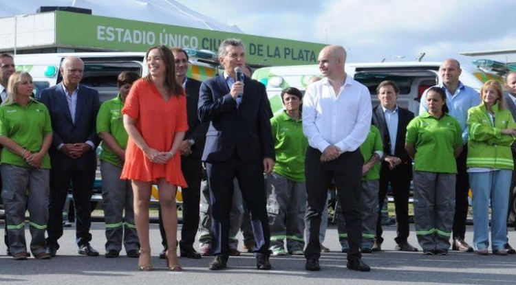 El presidente Mauricio Macri dijo que la gobernadora María Eugenia Vidal llegó a la provincia de Buenos Aires para hacer "una revolución" en territorio de "machotes bravos", y que tuvo que llegar una mujer como ella para "cambiar la historia", al tiempo que subrayó que la mandataria lleva adelante una batalla "central" que es "importante para todos los argentinos" con el objeto de lograr "una educación pública de calidad".En la presentación del SAME Provincia, en el Estadio Único de La Plata, Macri estuvo acompañado por el jefe de Gobierno porteño, Horacio Rodríguez Larreta, por los intendentes bonaerenses que recibieron ambulancias para sus localidades, y por Vidal, a quien volvió a elogiar tal como había hecho días atrás en Saladillo durante un acto en la empresa de helicópteros Cicaré. "María Eugenia, una vez más yo quiero agradecerte por tu compromiso con la provincia; pasaron solo 15 meses del día que arrancaste, menos de dos años y medio de cuando soñamos por primera vez que seas candidata; muchos decían que estaba loco", dijo Macri.En ese plano, recordó que decía en ese entonces que a Vidal "cuando la conozcan la van a respetar y admirar como yo la admiro y va a hacer una revolución en la provincia, la provincia de los machotes bravos del conurbano"."Tuvo que venir una mujer para cambiar la historia", elogió el jefe de Estado, y especificó que Vidal está dando una batalla "central" que es "importante para todos los argentinos", al referirse al conflicto docente en la provincia. "Quiero decirte que frente a todas estas batallas hay una central que estás dando y que es muy importante y que no solamente es importante para los bonaerenses, es importante para todos los argentinos porque cuando hablamos de que el principal compromiso de mi gobierno es el compromiso de reducir la pobreza hay una herramienta de la cual no podemos prescindir para que eso sea una realidad, que es la educación pública de calidad", dijo Macri.En la presentación de la ampliación del servicio de emergencias médicas porteño a la provincia, Macri le agradeció a Rodríguez Larreta por "su generosidad" en replicar el modelo que ya funciona en 20 municipios bonaerenses y que antes de fin de año alcanzará a 41 comunas.El Jefe de Estado hizo hincapié en que la Nación, la Provincia, la Ciudad y las intendencias "de diferentes signos políticos" han dejado de lado “diferencias geográficas y políticas para ayudar a que los bonaerenses se sientan más tranquilos y seguros”."Hoy estamos acá para que siete millones de argentinos sepan que si alguien tiene una emergencia, alguien lo va socorrer", subrayó.Por su parte, Vidal, aseguró que el SAME "serà un servicio de respuesta rápida y cotidiana, con personal especializado, de amplia cobertura territorial, organizado en bases ubicadas estratégicamente para poder asistir eficazmente ante situaciones de emergencias médicas, tanto individuales como colectivas", y resaltó que con este emprendimiento "se cumple con una promesa de campaña".En tanto, Rodriguez Larreta se mostró "orgulloso" de que el SAME "pueda ayudar a tanta gente del conurbano bonaerense" y resaltó eso será posible "gracias al empuje de Maria Eugenia Vidal".Con una inversión de más de mil millones de pesos, la implementación del SAME se realiza en etapas, y en esta primera, en plena ejecución, contempla a 20 municipios, la entrega de 140 ambulancias, un equipo de recursos humanos de 2.500 personas y un alcance de asistencia a siete millones de bonaerenses.Participaron del acto los jefes comunales Julio Garro (La Plata), Mariano Cascallares (Almirante Brown), Jorge Nedela (Berisso), Daniel Cappelletti (Brandsen), Alejandro Granados (Ezeiza), Darío Kubar (General Rodríguez) y Néstor Grindetti (Lanús).También Martín Insaurralde (Lomas de Zamora), Ramiro Tagliaferro (Morón), Nicolás Ducoté (Pilar), Hernán Yzurieta (Punta Indio), Martiniano Molina (Quilmes), Gustavo Posse (San Isidro) y Ariel Sujarchuk (Escobar).Fuente: Télam