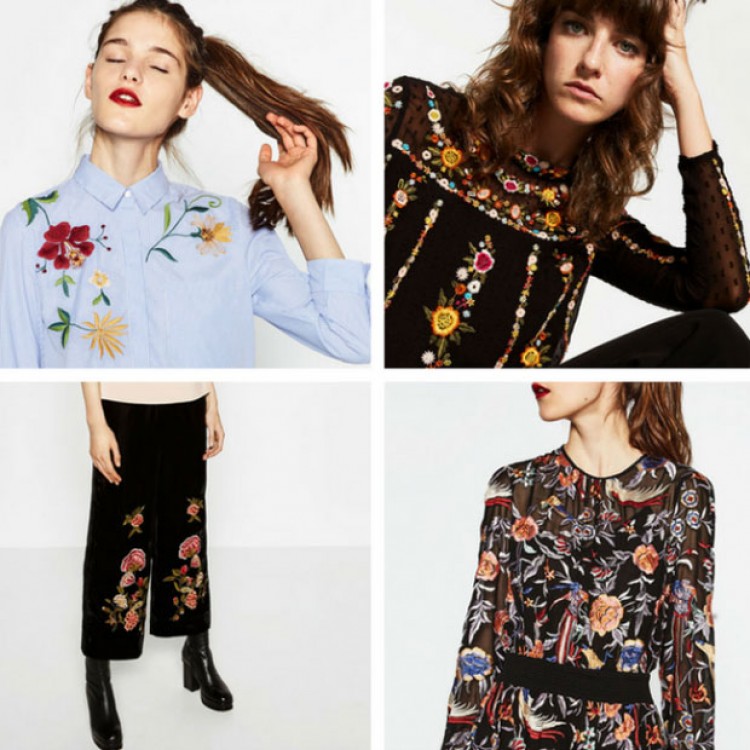 Bordados Zara. 2017¿Recuerdan cuando les mostramos las camperas con apliques? Ahora reforzamos la tendencia de flores, bordados y grandes detalles. También los géneros suaves cargados de rosas. Podés animarte a bordar tus caminas, los palazos y algún abrigo. La llaman la flora invernal y muchas creaciones son para reconocer el arte, pero basta con que te compres un aplique para estar a la moda.