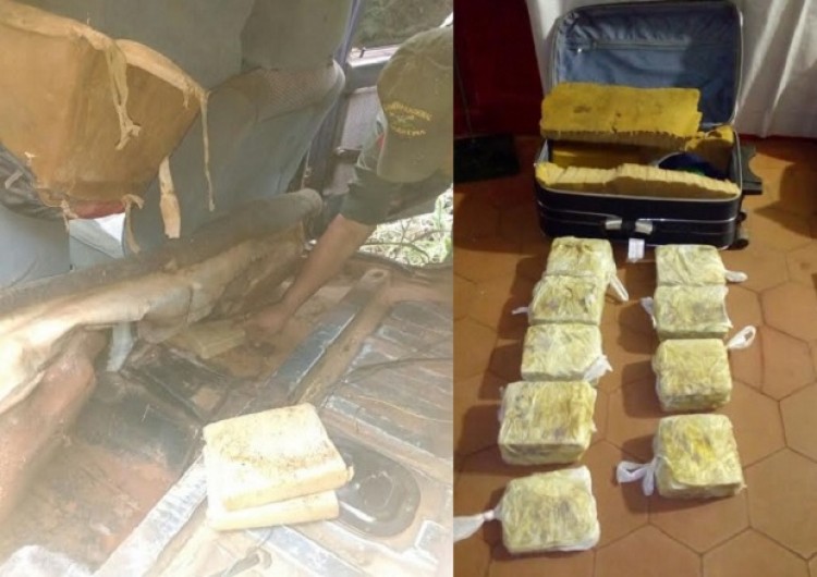 En uno de los procedimientos, efectivos del Escuadrón 11 de Gendarmería Nacional realizaron -a la altura del kilómetro 1.466 de la ruta 12- el control de un ómnibus de larga distancia procedente de Puerto Iguazú que se dirigía hacia la terminal porteña de Retiro.Los uniformados llevaron a cabo la requisa de la bodega de equipajes y, con la asistencia de la perra antinarcóticos Laika, detectaron algo sospechoso en un bolso.Frente a testigos, se comprobó que en él ocultaban 31 paquetes recubiertos con grasa mecánica.El resultado del narcotest arrojó positivo para marihuana por un peso total de 18,364 kilogramos de marihuana. A instancias de la justicia federal, se decomisó el estupefaciente y se arrestó al involucrado.Posteriormente, se emplazó un puesto fijo en la intersección de las rutas nacional 12 y provincial 6, donde se observó que un vehículo azul giraba "en U" para evadirlo.Entonces, los gendarmes iniciaron un seguimiento que finalizó 200 metros más adelante. Una vez detenida la marcha, el hombre y la mujer que viajaban en el auto esgrimieron que intentaron burlar el control por no contar con el seguro correspondiente, pero los efectivos de GN pudieron constatar a través de la chapa patente que el rodado tenía prohibición para circular y que el asiento trasero estaba removido.La inspección del vehículo dio cuenta de la presencia de siete paquetes tipo "ladrillo" que habían sido escondidos debajo de una alfombra de color gris, en tanto que otros seis se encontraban bajo el tapizado del asiento del acompañante y el torpedo. En total, se decomisaron los 13 paquetes, con un peso total de 12,459 kilogramos de marihuana. Funcionarios judiciales ordenaron la detención de los dos involucrados y el secuestro de documentación de interés para la causa.