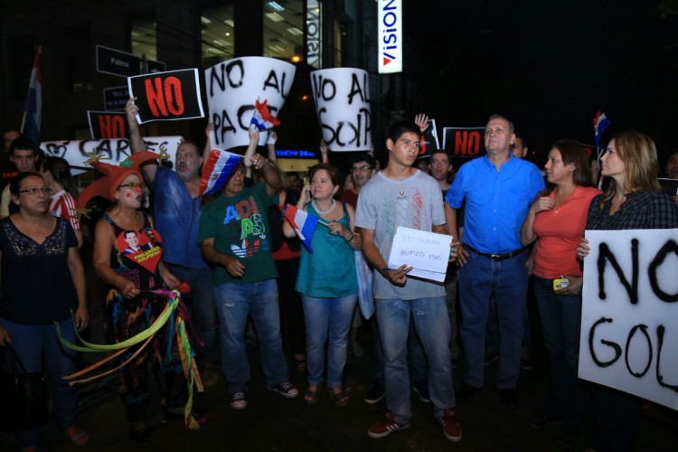 Con la presencia del intendente de Asunción, la capital paraguaya. Mario Ferreiro, un millar de manifestantes que se aglutinaron en la zona del Panteón Nacional de los Héroes denunció que en el Senado se llevó adelante un "golpe de estado parlamentario". Es a raíz de la sesión en la que 25 senadores reformaron el reglamento interno de la cámara para así poder impulsar la reelección del presidente Horacio Cartes, que no está prevista legalmente. Se habla de un pacto entre el expresidente Fernando Lugo y Cartes.Este martes por la mañana, momentos de mucha tensión se vivieron en las salas del Congreso Nacional luego de que Julio César Velázquez se autoproclamara presidente del Senado apoyado por sus pares seguidores de Cartes, Lugo y otros, quienes en tiempo récord dieron trámite a un proyecto cambió el reglamento interno de la Cámara Alta en busca de retirar atribuciones de las manos del presidente del Congreso. Legisladores opositores no dudaron en hablar de "golpe de Estado":<p lang="es" dir="ltr">El golpe de estado está en marcha,sin sesión se auto proclamó Julio Velázquez presidente, estando Acevedo y Petta en el predio. Eso es golpe</p>— Enrique Bacchetta (@EnriBacchetta) <a href="https://twitter.com/EnriBacchetta/status/846780342983938049">28 de marzo de 2017</a>De acuerdo con lo publicado por el diario ABC, el jefe comunal capitalino dijo que para combatir este tipo de atropellos "no hay nada más importante que la repuesta ciudadana" porque "este tipo de cosas son las que desprestigian a la política y luego cuesta que la gente crea en otro proyecto porque el contenido se va vaciando, además la gente ya piensa que se van acomodando a sus intereses. La gente no es tonta".Consideró que debe haber alternancia y por eso "estamos en contra de la violación de la Constitución Nacional" por lo que si quieren reelección deben buscar otra manera "y no un atropello como lo que hoy ocurrió. Me parece una pesadilla", declaró.Hizo alusión a que "hoy puede comenzar una campaña histórica de que no queremos más un mandato que se impone desde 25 personas, de que no queremos más dictadura".El presidente del Partido Liberal Radical Auténtico, Efraín Alegre, también se hizo presente en la movilización y advirtió que para el jueves se tiene prevista otra igual, para la cual se dialogará y resolverá con los sectores democráticos". Señaló además que los liberales que apoyaron este golpe serán expulsados.Lo que hoy pasó fue "un golpe de Estado y todos fueron testigos". Como posible solución para evitar que esto se repita señaló la movilización de la ciudadanía y "decirle no a Cartes con enmienda o sin enmienda".De acuerdo con lo informado por el diario Última Hora, las Fuerzas Militares tienen la orden de permanecer en alerta, en medio de la tensión entre legisladores que forzaron el tratamiento de la enmienda pro reelección y la llegada de campesinos a la capital para su marcha tradicional.La orden se emitió este martes, a las 7.00, mientras que los militares ya resguardaban horas antes las inmediaciones del Congreso Nacional y el Palacio de Gobierno.Incluso el Regimiento Escolta Presidencial, que tiene la misión de resguardar la seguridad del presidente y el vicepresidente de la República y sus familiares, estuvo rodeando el Parlamento en medio de la tensión entre los legisladores pro enmienda y los que la rechazan. También estuvieron francotiradores de la Policía Nacional, aunque el director de la primera zona policial, Prudencio Burgos, los denomina grupos de observadores tácticos.El documento hace referencia a la operación "Aty Guazú" y también se ejecuta en coincidencia con la llegada de los campesinos a Asunción. La gran marcha de los labriegos arrancará este miércoles a las 7.30 y terminará en la Plaza de las Armas, frente al Congreso Nacional.Fuente: Medios Digitales