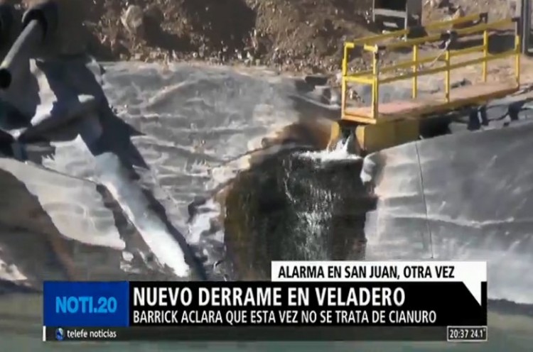 Un nuevo derrame de "solución rica" compuesta por solución cianurada y mineral de oro, se produjo en la mina Veladero que opera la empresa Barrick Gold en San Juan, confirmó el subsecretario de Información Pública provincial, Osvaldo Lima. Se trata del cuarto incidente en dos años y muchas miradas apuntan a las faltas de control provincial."La empresa informó anoche (martes) que a las 22 horas se desprendió un caño que transporta solución rica en el Valle de Lixiviación", detalló. Lima aseguró que el incidente "fue controlado por el personal" de la mina e indicó que habrá una evaluación sobre lo ocurrido. Ante los hechos informados, se dispuso el inmediato envío de una comisión integrada por personal del Ministerio de Ambiente y de Minería de la Nación, para verificar lo sucedido. "Más allá de las competencias que respetamos, como Ministerio de Ambiente debemos tomar todas las medidas que se requieran para verificar lo sucedido", sostuvo el ministro de Ambiente, Sergio Bergman. "Haremos una inspección in situ para determinar los hechos y constatar si hay afectación interjurisdiccional del ambiente. Oportunamente hicimos una denuncia contra la empresa Barrick por una serie de irregularidades que se detectaron y haremos todo lo que sea necesario para que se respete la ley", agregó.La situación puso en alerta a las organizaciones ambientalistas y a la comunidad de Jáchal, el pueblo cercano a la mina de Veladero.Este miércoles, Greenpeace Argentina y la Asociación Argentina de Abogados Ambientalistas hicieron un pedido de información urgente sobre el impacto de este nuevo derrame en la mina de Barrick Gold, al advertir que podría ser "altamente contaminante". "Se entiende que el material enriquecido posee metales pesados que son un riesgo para el ambiente. Si Barrick Gold negó con anterioridad el derrame de más de un millón de litros de agua cianurada, ¿por qué creerles en esta oportunidad?", dijo Gonzalo Strano, coordinador de la campaña de glaciares de Greenpeace en Argentina.Por su parte, el Gobierno provincial volvió a quedar en el ojo de las críticas y de las sospechas de presunta complicidad con la minera.La mina Veladero está ubicada a 350 kilómetros al noroeste de la ciudad de San Juan, a una altura de entre 4.000 y 4.850 metros sobre el nivel del mar, y el incidente de este mertes fue el cuarto en dos años. El 13 de enero se produjo un derrame en otro yacimiento en San Juan a cargo de la empresa canadiense Barrick Gold, que admitió un "incidente" en Lama provocado por "deshielo".Respecto a lo sucedido este martes, la minera precisó que "el sistema de monitoreo instalado en la mina Veladero, permitió detectar una rotura en una cañería que transportaba solución de oro y plata dentro de la zona del Valle de Lixiviación". Barrick Gold detalló que la detección de la rotura permitió que "en forma inmediata se activaran los procedimientos para contener y mitigar la situación", al tiempo que "se brindó información a las autoridades de la provincia de San Juan".Fuente: Télam y medios digitales