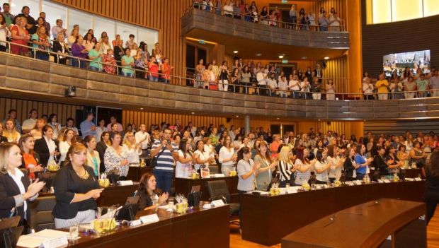 La comisión de Derechos Humanos, Acceso a la Justicia y Digesto de Género estudió iniciativas para que se creen juzgados, defensorías y fiscalías con competencia exclusiva en delitos cometidos en un contexto de violencia de género; crear una red de equipos interdisciplinarios para la lucha contra la violencia; y para conseguir que se informen cuestiones relativas al uso del botón antipánico.Asimismo, para que se instituyan los observatorios de Políticas Públicas y Desarrollo local; y de la Violencia contra las Mujeres; la creación del premio Melchora Caburú; de los programas de contención del niño con padres privados de su libertad; de capacitación y fortalecimiento de mujeres en situación de vulnerabilidad para la participación en el desarrollo local, en ejercicio de sus derechos; de albergues estatales para personas travestis, transexuales y transgénero que han quedado sin hogar; crear una guardería infantil para hijos y nietos del personal legislativo; y generar acciones tendientes a contener a víctimas de violencia en la localidad de 25 de Mayo.Los proyectos tratados en la comisión de Seguridad Social, Discapacidad, Adultos Mayores y Salud tienen como objetivo la ampliación de la cobertura del programa de Tratamiento Endovenoso del IPS; la adhesión de la provincia a la Ley Nacional de Salud Mental 26.657, y su decreto reglamentario 603/2013; la creación del Parlamento Inclusivo Provincial; establecer un sistema integral de información provincial sobre discapacidad; crear un centro de recreación deportivo, cultural, y turismo social para los adultos mayores; y un instituto provincial de control de accesibilidad para personas con discapacidad.También se busca crear talleres sobre educación alimentaria nutricional; instituir el programa “El cáncer infantil se cura”; promover medidas para el reconocimiento de derechos a docentes; e incorporar en el ámbito del Ministerio de Salud Pública el organismo de control de hospitales y CAPS; y el programa “Mamá canguro”.En tanto, la comisión de Educación, Cultura, Juventud y Deporte analizó expedientes para implementar una dirección de educación secundaria especial; la intervención obligatoria de un traductor e intérprete de lenguas originarias en toda gestión administrativa; crear centros de información para el empoderamiento de la mujer; el programa provincial de oportunidades y libertades desde el deporte, en las penitenciarías, para internos e internas; y talleres de apoyo socio económico y empoderamiento para mujeres familiares de personas en situación de adicción.Para que se incorpore un seminario de orientación vocacional como materia anual obligatoria en el nivel secundario; se establezca como obligatoria la enseñanza de la natación en instituciones públicas y privadas del nivel primario; y en los niveles inicial y primario, la enseñanza de valores de convivencia y compromiso ciudadano; se designe a la plaza de Pozo Azul con el nombre María Helena Pierron; se modifique el artículo 2 de la Ley VI 189 Boleto Estudiantil Gratuito Misionero; se cree una red de emprendedoras de la cultura; el programa de capacitación y fortalecimiento de mujeres en situación de vulnerabilidad para la participación en el desarrollo local; un centro cultural para niños, niñas y adolescentes; y se establezca la protección y conservación del patrimonio arqueológico de la provincia.En temas relacionados con el trabajo, la producción y el medio ambiente, el Parlamento de la Mujer propuso implementar los programas, de capacitación para personas sordas e hipoacúsicas; de accesibilidad en turismo; otro para revalorizar a las mujeres víctimas de violencia; implementar un régimen de ordenamiento de los asentamientos urbanos; de licencias para mujeres víctimas de violencia de género; el cupo de inclusión laboral para las personas travestis, transexuales y transgénero; y el Centro del Conocimiento de la Mujer.También se busca crear lineamiento de planificación paisajística en zonas urbanas; el programa “Ferias emprendedoras de la Mujer Misionera; el observatorio de violencia laboral; talleres y cursos de formación político sindical; el programa de Parques Industriales con Perspectiva de Género; y el de Apoyo a Emprendedores Artesanales Sustentables; así como declarar de interés social la lactancia materna, a fines de promover y garantizar el rol de la mujer como madre en los espacios públicos y privados; y crear el programa provincial de centros barriales de atención a la primera infancia.Los expedientes aprobados durante la sesión de este jueves en el recinto de la Cámara de Representantes ingresarán al circuito parlamentario en el período de sesiones de este año.Fueron autoridades de este Parlamento de la Mujer: Noelia Olivera, presidenta; Liliana Vivero, vicepresidenta primera; Natalia Ruez, vicepresidenta segunda; Alejandra Arroyo, secretaria legislativa a cargo del Área Parlamentaria; Luisa Fraga, secretaria legislativa a cargo del Área Administrativa; Cristina Ryndycz, secretaria legislativa a cargo del Área del Centro del Conocimiento Parlamentario; Delia Albisser, secretaria legislativa a cargo del Área del Digesto Jurídico; María Laura Valenzuela, secretaria legislativa a cargo de la Coordinación de la Unidad de Gestión en TICs; Lilia Rodríguez, prosecretaria legislativa a cargo del Área Parlamentaria; Romina Silvero, prosecretaria legislativa a cargo del Área Administrativa; Alicia Arruda, prosecretaria legislativa a cargo del Área del Centro del Conocimiento Parlamentario; y María del Carmen Aguirre, prosecretaria legislativa a cargo del Área Digesto Jurídico. Fotos: Prensa Legislatura