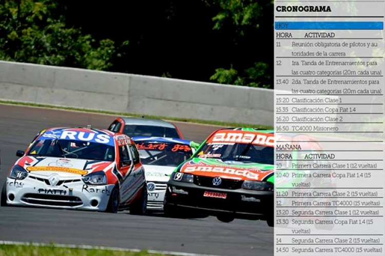 Con varios retornos e incorporaciones a las distintas categorías, hoy se pondrá en marcha un nuevo Campeonato Misionero de Automovilismo en Pista, en el autódromo Ciudad de Oberá.Hoy los protagonistas saldrán a girar en los entrenamientos y la clasificación correspondiente a la primera fecha, en la que seguramente habrá buena acción en las cuatro categorías:?Copa Fiat 1.4,?Clase 1, Clase 2 y TC4000 Misionero.Luego de un receso más largo que en ediciones anteriores, el espectáculo de la Federación Misionera de Automovilismo Deportivo (Femad) intentará conquistar al público de la tierra colorada con carreras atractivas. Para ello, los protagonistas ultimaron detalles en los talleres, con la puesta a punto de los autos, tanto en la parte mecánica como en la estética.Según adelantaron desde el departamento de prensa de la Femad, “en la Clase 2 varios de los pilotos que corrieron en la última fecha ya confirmaron su presencia;?en la Copa Fiat 1.400cc se espera alrededor de 18 pilotos, en el TC4000 Misionero unos 15 y en la Clase 1 aproximadamente 10 autos serían de la partida.El viernes hubo intensas prácticas con protagonistas de las diferentes categorías, lo que de alguna manera genera expectativa para un buen arranque.Los campeones 2016, que se ganaron el derecho de pintar el 1 son Julio Benítez (TC4000), Juan Pablo Abente (Copa Fiat), Carlos Cabral (Clase 1)?y Matías Garavano (Clase 2).