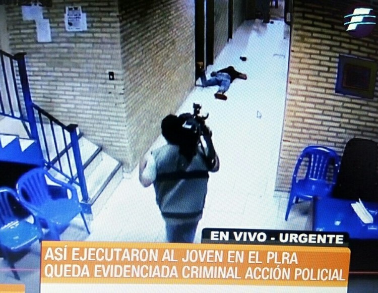 En la conferencia, se mostró el video del circuito cerrado rescatado del propio local del PLRA, donde se ve a los efectivos policiales disparando desde el mismo momento en que entraron al sitio.Díaz Verón agregó que con estos elementos se tiene claro como sucedieron los hechos y a los responsables.Por su parte, el doctor Pablo Lemir, forense del Ministerio Público, dijo que el joven recibió un solo disparo de arma de fuego y que en el cuerpo se encontraron además siete balines de metal. Esa bala de arma de fuego, escopeta, fue la que le causó la muerte en forma casi instantánea.Por su parte, la fiscal Raquel Fernández, dijo que son varios los efectivos policiales detenidos y que en el curso de la investigación se determinará quien realizó efectivamente el disparo que acabó con la vida del joven.Dijo que fueron detenidos los suboficiales de Policía, Arnaldo Andrés Baez, Gustavo Florentín, Ever Benítez, Jorge Ramírez y Guido Amarilla, todos de la agrupación antidisturbios.En principio, se identificó al suboficial Gustavo Florentín como el autor del disparo, pero la agente fiscal sostuvo en la conferencia de prensa que se analizarán todas las pruebas para determinar en forma irrefutable la autoría del mortal disparo.Fuente: lanacion.com.py