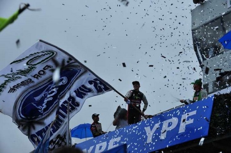 Matías Rossi, a bordo de un Ford, se quedó con la carrera del Turismo Carretera (TC) que se disputó este domingo, en el autódromo de Olavarría, en el marco de la tercera fecha del campeonato 2017 de la categoría. En tanto, Juan Manuel Silva con Ford se ubicó en el segundo lugar del podio y la tercera colocación fue para el platense Gastón Mazzacane con Chevrolet."No lo puedo creer, es una alegría muy grande. En el día de mi cumpleaños no hay mejor regalo que este", manifestó emocionado Rossi, quien este domingo festeja sus 33 años y que logró su primera victoria con Ford.Apenas comenzó la competencia la pista se encontraba mojada a raíz de la lluvia caída y Sergio Alaux largó desde la primera posición mientras que Julián Santero, que estaba segundo, empezó a intentar pasarlo, pero no pudo. Tras producirse un terrible accidente protagonizado por Santiago Mangoni, quien recibió un muy fuerte golpe de Mathías Nolesi cuando su auto quedó parado en la mitad de la pista, ingresó el Auto de Seguridad y el piloto fue trasladado a un centro de salud en ambulancia.Cuando se cumplió el séptimo giro se reanudó la competencia, otra vez mandaba Alaux, seguido por Santero y Juan José Ebarlín, posiciones que no se modificaron hasta los primeros ingresos a los boxes para cambiar neumáticos.En tanto, Gastón Mazzacane, Matías Rossi, Juan Manuel Silva, Josito Di Palma y José Ignacio Savino fueron los primeros en hacer la parada obligatoria en los boxes mientras que de inmediato salió nuevamente el Auto de Seguridad porque el vehículo de Norberto Fontana había quedado muy mal ubicado en pista.En la vigésima vuelta ya habían ingresado todos a cambiar neumáticos y Mazzacane era quien ganaba la carrera, seguido por Rossi y Silva, pero cuando faltaba muy poco para el final, el "Misil" logró pasar al platense en una maniobra debido a que Mazzacane se pasó y de esta manera perdió el primer lugar.El cronómetro diría que la carrera terminaría por tiempo y Rossi fue el que se adjudicó su primera victoria con Ford mientras que el podio lo completaron Gastón Mazzacane y Juan Manuel Silva. La cuarta ubicación quedó para Esteban Gini (Chevrolet) mientras que en el quinto lugar quedó Emanuel Moriatis (Ford), sexto fue José Savino (Ford), séptimo José Luis Di Palma (Torino), octavo Christian Ledesma (Chevrolet), noveno Emiliano Spataro (Torino) y décimo Nicolás González (Torino).Fuente: NA