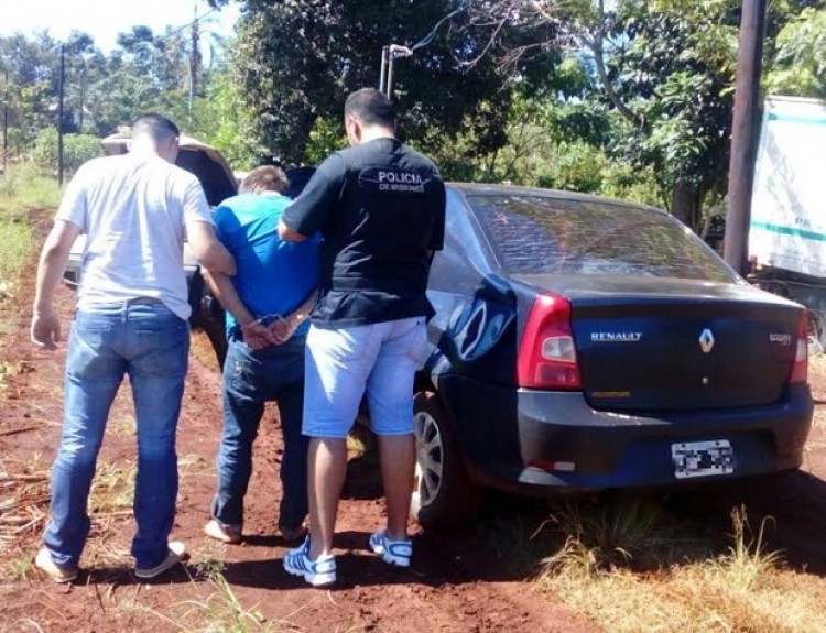 Una investigación por narcotráfico y contrabando guió a los efectivos de la División Investigaciones de la Unidad Regional IX hasta el barrio Lomas de Jardín, donde los dos sospechosos de 21 años, al notar la presencia de los policías de civil, emprendió una huida a bordo de un vehículo Fiat Adventure.Durante la fuga, desde el interior del rodado, efectuaron disparos contra los integrantes de la fuerza provincial. La persecución primero se extendió hasta un barranco, donde el auto del fugitivo quedó atascado y su ocupantes salieron a correr hacia un sector de casas en la zona rural.Uno de ellos, Eleandro D.R. (21), irrumpió en una vivienda familiar y, pese a que se ocultó debajo de una cama, fue hallado y capturado por los investigadores. Persiste un intenso operativo en la zona para la detención del cómplice. Entretanto, el Fiat Adventure, cuyo dominio colocado corresponde a un Peugeot 307 radicado en Garupá, será requisado en breve. A simple vista ya se visualizaron máscaras, un handy y bolsas negras presumiblemente destinadas al cargamento de estupefacientes.Fotos: Policía de Misiones