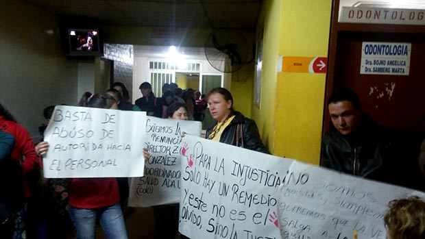 Unos veinte vecinos de San Vicente se presentaron esta mañana, minutos antes de las 7, en el hospital de esta localidad para reclamar la renuncia del director del nosocomio, que se le permita el ingreso a los encargados de cocina y limpieza, terminación del nuevo hospital, entre otros temas. Los manifestantes ocupan el área de consultorios externos y exigen la presencia del ministro de Salud Pública, Walter Villalba.