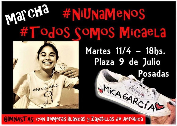 Será la segunda expresión de repudio por la muerte de la joven entrerriana Micaela García en la capital misionera. Tenía 21 años, fue asesinada el pasado 1 de abril y su cuerpo fue encontrado el fin de semana tras la confesión de su asesino Sebastián Wagner.
