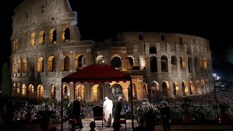 Al final del sugestivo recorrido con el que se conmemora el calvario de Cristo hasta su crucifixión, el papa pronunció más de siete veces la palabra "vergüenza" para enumerar los pecados, omisiones, injusticias, escándalos y horrores que azotan al mundo y a la misma iglesia."Vergüenza por la sangre inocente que cotidianamente viene derramada por mujeres, niños, emigrantes, personas perseguidas por el color de la piel o por su pertenencia étnica, social, o por su fe en ti", dijo el papa con voz firme y a la vez conmovida.Dirigiéndose al Cristo crucificado, el papa argentino reconoció su "vergüenza" "por todas las imágenes de devastación, de destrucción, de naufragio, que se han convertido en ordinarias para nosotros", agregó.El Papa reconoció también su "vergüenza por todas las veces que obispos, sacerdotes, consagrados y consagradas hemos herido tu cuerpo, la Iglesia", dijo en un alusión a los abusos cometidos por curas pedófilos.En su oración, el pontífice pidió por "nuestros hermanos arrasados por la violencia, por la indiferencia y por la guerra" e instó a "romper las cadenas que nos tienen prisioneros en nuestro egoísmo, en nuestra ceguera involuntaria, y en la vanidad de nuestros cálculos mundanos".El pontífice llegó a las 21 locales (19 GMT) al célebre monumento romano, en donde unas 20.000 personas, turistas y religiosos, entre ellos la alcaldesa de Roma, Virginia Raggi, lo esperaban, algunos con antorchas.El recorrido nocturno alrededor del monumento romano se celebró este año en un clima particular, marcado por las fuertes medidas de seguridad adoptadas desde los atentados del domingo en Egipto contra dos iglesias de cristianos coptos y que costaron la vida a 45 personas. Roma blindada"Roma está blindada, vigilada. Espero que no suceda nada", comentó una joven a la RAI, la televisión italiana, que transmitió en directo el evento a numerosos países.Toda la zona estaba vigilada por patrullas de la policía y el ejército, además de cuerpos especiales de inteligencia. Tanques del ejército fueron aparcados al ingreso de la gran avenida que conduce al Coliseo para impedir ataques contra la multitud con automóviles, como ocurrió en Londres y Niza.Francisco, de 80 años, presidió como el año pasado el rito desde la terraza del Palatino, frente al imponente anfiteatro romano, sin recorrer a pie las 14 estaciones.Para esta ocasión, las meditaciones fueron escritas por la biblista francesa Anne-Marie Pelletier, que decidió no usar el nombre que habitualmente se utiliza.Entre los nuevos nombres de las catorce estaciones figuraba "Jesús es negado por Pedro", "Jesús y Pilato", mientras que a la última, la decimocuarta, la llamó "Jesús en el sepulcro y las mujeres", tema que desarrolló para hablar de la cuestión femenina, de las mujeres que sufren.En cada una de las estaciones, algunas dispuestas dentro del monumento, una liviana cruz de color gris fue cargada por jóvenes, inmigrantes, religiosos.En la décima estación una familia colombiana formada por Claver Martínez Ariza, su esposa Marlene y dos hijos llevó la cruz. En la octava, le tocó el turno a una familia egipcia. Las dos familias representaban a los dos países que el Papa anunció que visitará este año para instar al diálogo y la reconciliación, en particular Colombia, donde espera impulsar en septiembre el perdón tras la histórica firma de la paz con la guerrilla de izquierda de las FARC que puso fin a más de 50 años de conflicto. Antes del Vía Crucis, el pontífice, vestido de rojo y en la oscuridad, se acostó sobre un tapete en la basílica de San Pedro, sin cruz pectoral ni anillo del pescador, como símbolo de que Jesús ha muerto. El domingo culminarán las celebraciones de Semana Santa con la misa de Resurrección y el mensaje "Urbi et orbi", a la ciudad y al mundo.Fuente: Agencia de Noticias AFP/NA