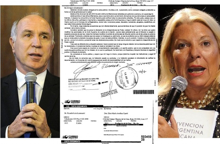 "Niego todas las acusaciones que usted efectúa falsamente", sostuvo el titular del máximo tribunal en el texto, a la vez que acusó a la diputada nacional de "presionar al Poder Judicial". Y agregó: "No habiendo cesado su conducta, no me queda otro camino que proceder a iniciar acción de responsabilidad civil por daños". "La exhorto a que respete la independencia del Poder Judicial", afirma Lorenzetti en su carta.La nueva carta documento se da días después de que Carrió ratificara sus denuncias contra el oriundo de Rafaela y en el marco de una dura disputa entre ambos que en las últimas semanas llegó al punto más conflictivo, con el pedido de juicio político que presentó la chaqueña en la Cámara de Diputados.La vicepresidenta Gabriela Michetti afirmó este lunes que "no" comparte las acusaciones de la diputada nacional Elisa Carrió (CC-ARI) contra el presidente de la Corte Suprema, Ricardo Lorenzetti, porque "no" tiene "ningún factor" que le diga que debe ser "acusado en juicio político"."No comparto las acusaciones de (Elisa) Lilita (Carrió) contra Lorenzetti porque no tengo ningún factor que me diga que el presidente de la Corte (Suprema de Justicia) tiene semejante situación como para ser acusado en juicio político", enfatizó Michetti.En declaraciones al canal América TV, aseguró que Lorenzetti es "un señor que hasta ahora ha dado muestra de ser un señor bien".Este lunes Mauricio Macri respaldó a Elisa Carrió luego de que la Cámara Federal reabriera un expediente en su contra por enriquecimiento ilícito.<p lang="es" dir="ltr">Conozco la honradez de Elisa Carrió y su calidad moral. Confío plenamente en ella.</p>— Mauricio Macri (@mauriciomacri) <a href="https://twitter.com/mauriciomacri/status/854028739130404865">17 de abril de 2017</a> "Quiero dejar claro mi respaldo a la Dra. Carrió frente a las denuncias judiciales que se le han hecho", escribió el Presidente en su cuenta de Twitter. Y agregó: "Conozco la honradez de Elisa Carrió y su calidad moral. Confío plenamente en ella".La diputada Carrió aseguró este lunes que el presidente de la Corte Suprema estaría detrás de la reactivación de la denuncia por supuesto enriquecimiento ilícito que hicieron un comerciante de Pilar y un abogado en su contra por un viaje de 2016 a Estados Unidos.En declaraciones a Canal 13, Carrió alertó que el presidente Mauricio Macri "un día de rodillas" le "va a pedir que lo saquen a Lorenzetti" de la Corte porque "lo va a extorsionar".Los camaristas federales Martín Irurzún y Eduardo Farah le dieron impulso a la denuncia contra "Lilita" luego de que cuestionaran una decisión adoptada en primera instancia por Sebastián Casanello, quien había cerrado el caso.La acusación fue presentada en noviembre de 2016 por Saúl Enrique Paz en virtud de una serie de viajes al exterior que hizo Carrió y que, según la denuncia, serían inconsistentes con sus ingresos como diputada. Asimismo, en marzo de este año, el abogado Mariano Valdez realizó una acusación similar que recayó en el juzgado de Luis Rodríguez. Se prevé que ambas causas serán unificada.Carrió reapareció públicamente est domingo en el programa de Mirtha Legrand. Confirmó que no será candidata a senadora por la provincia de Buenos Aires y supeditó una postulación en la Ciudad a un respaldo público de Cambiemos. El gesto de Macri de este lunes pareciera ratificar que el PRO quiere a "Lilita" para jugar en octubre en la Capital Federal. El otro referente del distrito que adelantó que se presentará en las urnas es Martín Lousteau, líder de ECO, quien dejó su lugar en la Emabajada de la Argentina en los Estados Unidos.Al respecto, Michetti afirmó que "hay que ver cómo compatibilizar lo que la persona quiere y lo mejor para el equipo", al referirse a las candidaturas de Cambiemos de cara a las elecciones legislativas de octubre."Somos un grupo, no podemos hacer cada uno lo que se le da la gana. Hay que ver cómo compatibilizar lo que la persona quiere y lo mejor para el equipo", enfatizó Michetti, luego de que se le preguntara sobre una candidatura de la titular de la Coalición Cívica Elisa Carrió en la legislativa.La vicepresidenta dijo "no" haber escuchado a la gobernadora bonaerense, María Eugenia Vidal, decir que no quería que la diputada y socia de Cambiemos se postulara como candidata a senadora por la Provincia."No la he escuchado a María Eugenia decir ‘no quiero que venga Lilita’. No es una persona cerrada", señaló Michetti en declaraciones al canal América TV.En ese marco, Carrió reveló hoy que "no" será candidata a senadora por la provincia de Buenos Aires, y dijo no saber si lo hará por la Ciudad.