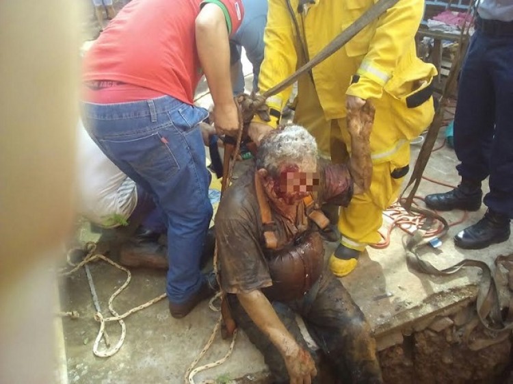 Momentos de dramatismo y tensión se vivieron este martes por la mañana en el patio de una vivienda ubicada en el barrio Nueva Argentina de Wanda. Allí, alrededor de las 10:30, Pedro C. (65) pisó la tapa de cemento de un pozo ciego, la cual se resquebrajó y provocó su caída a una profundidad aproximada de 5 metros.En medio de la desesperación, su familia llamó a los efectivos de la comisaría local y a los bomberos voluntarios, quienes acudieron al lugar para el rescate.Momentos después el sexagenario fue extraído del pozo y fue hospitalizado para curaciones y estudios.