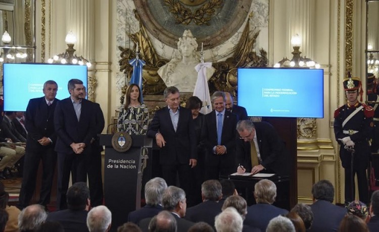 El acuerdo para la Modernización del Estado sellado en la Casa de Gobierno entre el presidente Mauricio Macri y trece mandatarios provinciales, entre ellos el misionero Hugo Passalacqua, contempla principalmente la jerarquización del empleo público, la capacitación integral de los trabajadores estatales, la implementación de expedientes electrónicos y el control de la ejecución presupuestaria. "Tenemos la convicción de llevar adelante la capacitación de los trabajadores estatales para que, conceptualmente, se ubiquen en la órbita no de empleados sino de servidores públicos", destacó Passalacqua en conferencia de prensa, refiriéndose específicamente al Instituto de Formación Superior de Misiones, uno de los primeros organismos en todo el país donde se forma y capacita al personal estatal de la Provincia a través de convenios con distintas universidades.Entre los puntos salientes del documento firmado, se promueve "el ingreso al Estado por concursos públicos y transparentes, desarrollando una adecuada estructura estatal". También se pondrá en marcha un mecanismo de "interoperatividad y conectividad" entre organismos provinciales y nacionales para facilitar las tramitaciones varias de los ciudadanos en todo el país sin necesidad de trasladarse al lugar donde se originó el trámite.El acuerdo también subraya la necesidad de que cada provincia y municipio implemente políticas propias para “desburocratizar el Estado” e incorporar el uso de expedientes electrónicos, evaluar la gestión local y controlar la ejecución presupuestaria.Todo apunta a mejorar y abaratar el sistema con la intención de disminuir el déficit fiscal, que para este año no podrá superar el 4,2%, según lo establecido en el Presupuesto nacional. Además, incluye el desarrollo de plataformas de compras y contrataciones abiertas y accesibles, y llevar conectividad a todo el país mediante la implementación de Wi-Fi gratuito.Además de Macri y Passalacqua, este Compromiso Federal fue firmado este martes por la mañana por el ministro de Modernización, Andrés Ibarra; los gobernadores de Salta, Juan Urtubey; de Jujuy, Gerardo Morales; de Buenos Aires, María Eugenia Vidal; de Río Negro, Alberto Weretilneck; de Neuquén, Omar Gutiérrez; de Tucumán, Juan Manzur; de Santiago Del Estero, Claudia Ledesma Abdala; de Catamarca, Lucía Corpacci; de San Juan, Sergio Uñac; de Corrientes, Ricardo Colombi; de Formosa, Gildo Insfrán; y el vice de Chubut, Mariano Arcioni.