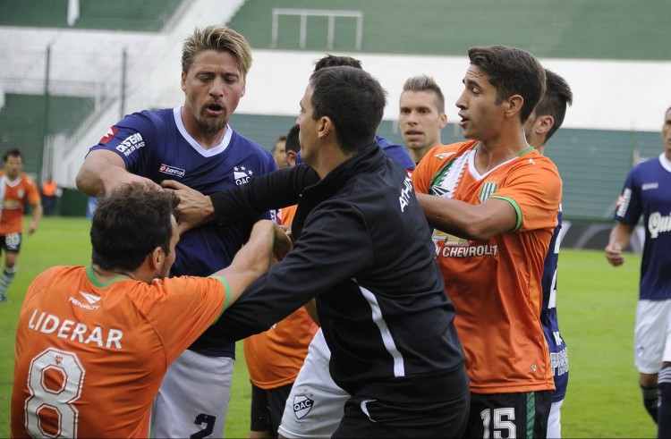 El encuentro, que resultó de carácter discreto, se llevó a cabo en el estadio "Florencio Sola", en el marco de la vigésima primera jornada del torneo de Primera División.Brian Sarmiento, a los 30 minutos del primer tiempo a través de un penal, estableció el desnivel inicial a favor de la formación del homenajeado Falcioni (le entregaron una plaqueta por cumplir 200 cotejos en el banco del "Taladro") mientras que Darío Cvitanich amplió las cifras a los 40 del  complemento.El "Cervecero" terminó el pleito con dos jugadores menos por sendas expulsiones de Gabriel Ramírez a los 42 minutos de la etapa inicial y de Matías Escobar a los 23 del complemento. Hilario Navarro le contuvo un penal a Federico Andrada, a los 17 minutos del segundo período. Luego de un comienzo parejo, a partir de la dudosa infracción de Matías Sarulyte a Nicolás Bertolo que Darío Herrera consideró penal, el dueño de casa se convirtió en dominador ante un adversario que al verse en desventaja a través de una maniobra discutible.Una vez que Sarmiento decretara la apertura desde los doce pasos, Quilmes se dejó poseer por la desesperación, que se acrecentó cuando quedó con diez hombres por la justificada expulsión de Ramírez por aplicarle un temerario "planchazo" a Sperduti.Cuando la tendencia hacía presagiar una cómoda victoria banfileña, la visita potenció su esfuerzo y con un hombre menos estuvo a punto de nivelar el score cuando Andrada hizo rebotar un remate en el brazo de Civelli. El mismo Andrada anunció mucho su remate desde el punto del penal para permitir el lucimiento del correntino Navarro, quien arrojándose sobre su derecha logró controlar el disparo. Ambos penales terminaron oficiando como punto de inflexión en el ánimo de los jugadores quilmeños, quienes tras la fallida ejecución del exdelantero de River volvieron a defeccionar espiritualmente. La expulsión de Escobar quien debía irse junto a Bertolo (solo fue amonestado) tras una escaramuza, le complicó todavía más el panorama al elenco de Cristian Díaz, que terminó de recibir el golpe de gracia casi sobre la expiración del cotejo luego que Sperduti estrellara un remate en el travesaño, cuyo rebote en el mismo fue a dar en Cvitanich, quien anotó libre de marcas. Pese a no jugar un gran partido, el anfitrión hizo valer la mayor jerarquía individual de su plantel en desmedro de un rival que no pudo hacer frente al hecho de haber jugado en gran parte del desarrollo en desventaja numérica y que cada vez mira más de cerca a la B Nacional, tomando como puntode referencia que perdió diez de los últimos once partidos disputados. Fuente: Agencia de Noticias NA