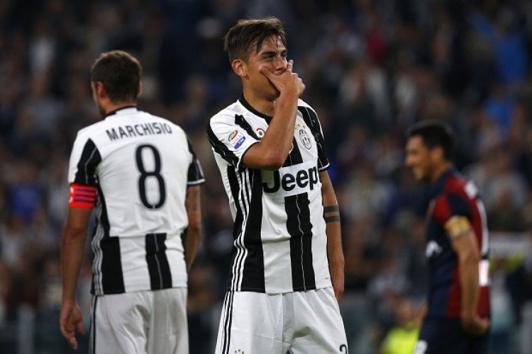Juventus, con un gol del delantero argentino Paulo Dybala, goleó este domingo a Genoa por 4-0, como local, y se encamina al hexacampeonato en Italia.El cordobés fue titular junto a Gonzalo Higuaín y a los 18 minutos del primer tiempo marcó el segundo gol del equipo local.El defensor argentino Ezequiel Muñoz, en contra, el croata Mario Mandzukic y Leonardo Bonucci marcaron los otros goles del líder de la liga italiana con 83 puntos, once más que el escolta Roma que mañana cierra la fecha ante Pescara.Luego de dejar en el camino a Barcelona, de España, y clasificar a la semifinal de la Liga de Campeones de Europa, Juventus dio un paso más hacia el histórico hexacampeonato.Dybala, de 23 años, llegó a los nueve goles en el certamen y volvió a anotar en el medio local luego de cuatro partidos de sequía.Genoa, por su parte, con Muñoz, Nicolás Burdisso, Santiago Gentiletti y Giovanni Simeone como titulares (Lucas Orban fue suplente) sumó su quinta derrota en los últimos seis partidos y está a seis puntos de la zona de descenso.Por otro lado, Lazio goleó a Palermo por 6-2, como local, y le descontó puntos a Napoli que, por su parte, empató 2-2 sobre la hora ante Sassuolo, como visitante, en la pelea por la clasificación a la próxima Liga de Campeones de Europa.Lazio, con el argentino Lucas Biglia como titular, no tuvo piedad con Palermo y en un tiempo ya le ganaba por 5-0 con tres goles de senegalés Balde Keita y dos de Ciro Immobile. Al cumplirse el tiempo reglamentario, Luca Crecco remató la goleada.El equipo romano llegó a los 64 puntos y quedó a seis puntos del tercer puesto que todavía siendo propiedad de Napoli, el último que estaría clasificando a la próxima edición de la Liga de Campeones de Europa.El conjunto del sur, en tanto, desperdició la oportunidad de quedar en la segunda posición pero rescató un punto a seis minutos del final en su visita a Sassuolo que terminó en empate por 2-2.Napoli quedó con 71 puntos, uno menos que Roma que este lunes cerrará la jornada ante Pescara, como visitante.Fuente: Télam
