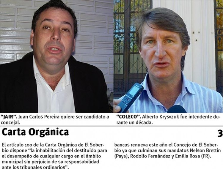 Desde la Municipalidad de El Soberbio notificaron, ante el Tribunal Electoral de Misiones, la inhabilitación para ocupar cargos de funcionarios destituidos por el Concejo de esta comuna, ante las posibles candidaturas de los exalcaldes Alberto “Coleco” Krysvzuk y Juan Carlos “Jair” Pereira.De acuerdo al documento presentado ante las autoridades electorales por el apoderado legal del municipio, Enrique Maier, la “Carta Orgánica Municipal de El Soberbio establece la inhabilitación del funcionario destituido en su artículo 100”. Dicha presentación -sostuvo- se realizó teniendo en cuenta la aproximación de los comicios para la elección de concejales de El Soberbio.Cabe recordar que días atrás, el exintendente “Jair” Pereira indicó que se presentaría como candidato para las legislativas municipales, ya que aspiraba a ocupar una de las tres bancas en juego en el Deliberante local.“La resolución del Concejo no quedó firme por parte del Superior Tribunal de Justicia de la provincia, no pueden impedir que me presente”, señaló Pereira a PRIMERA EDICIÓN.Ante ello, ratificó sus aspiraciones de volver a ocupar un lugar en el órgano deliberativo. “Se preocupan porque tengo muchos votos en la comuna”, destacó.Por su parte, el abogado del Ejecutivo municipal argumentó que la “resolución del Superior Tribunal de Justicia de la Provincia de Misiones, adoptada en la causa Expediente Nº 116599/2015, donde se declara abstracto el recurso de apelación del Sr. Juan Carlos Pereira y por consecuente queda firme la destitución del mismo efectuada por el Concejo Deliberante local”.Aspiraciones políticas“Me gustaría ir como candidato del Frente Renovador de la Concordia dentro de la comuna”, había expresado “Jair” Pereira.Consultado sobre las acusaciones y denuncias que realizaron desde la nueva gestión municipal en su contra, el exalcalde explicó que “nunca fue destituido y que nunca dejó su cargo al frente de la comuna”. “Yo culminé mi mandato y lo dejé el 10 de diciembre de 2015. Nunca quedó firme lo resuelto por la comisión investigadora, no hay impedimentos para que me presente como candidato”, remarcó Pereira e incluso se mostró optimista al recalcar que lograría ocupar “dos bancas en el deliberativo” de dicha localidad.Polémicas destitucionesEl Concejo Deliberante de El Soberbio aprobó el 21 de octubre de 2013, la destitución de su entonces intendente Alberto “Coleco” Krysvzuk por mal desempeño en sus funciones al frente de la Municipalidad. Una comisión investigadora conformada por los ediles determinó que el alcalde habría incurrido en millonarias irregularidades como desvío de fondos, facturas truchas y obras cobradas sin realizar.Posteriormente, la Justicia provincial ordenó su detención ya que fue acusado por malversación de fondos de la obra pública e irregularidades en el pago de pensiones. Ante esto, el destituido jefe comunal permaneció prófugo durante nueves meses y luego en enero de 2015 se entregó a las autoridades policiales. En este contexto, y tras estar más de dos años tras las rejas, el excorredor de rally obtuvo la libertad condicional y ahora deberá enfrentar un juicio oral. A su turno, el vice “Jair” Pereira, quien quedó a cargo del Ejecutivo comunal tras la destitución de Krysvzuk, también enfrentó una comisión investigadora y terminó destituido a meses de culminar su mandato el pasado 15 de octubre del 2015. En esa oportunidad, según el dictamen elaborado por los ediles del Concejo, Pereira incurrió en “ineptitud, negligencia e irregularidades en el desempeño de sus funciones”.Asimismo, pesan sobre él cuatro causas judiciales, dos de ellas por la no rendición de fondos girados para la concreción del Plan Techo en la localidad, una por la supuesta malversación de fondos y otra -por la cual incluso ya fue imputado- ante la supuesta “retención indebida de documentos públicos”. A todo esto, Pereira manifestó que no creía que las causas sean un impedimento para una eventual postulación.“Me gustaría decirle a los votantes, que seguiremos trabajando como siempre. Se dijeron muchas cosas pero se ha demostrado que mis dos años de gestión han sido transparentes y que trabajé para el pueblo. Cuando uno hace las cosas bien, trabaja tranquilo. No creo que esas causas me afecten”, afirmó. En contraposición, el abogado de la Municipalidad, Enrique Maier, explicó que “la Carta Orgánica de El Soberbio establece que todos los funcionarios que fueron destituidos no pueden ocupar cargos públicos, por esa razón tanto ‘Jair’ como ‘Coleco’, a quienes les quedó firmes las destituciones, no pueden postularse”.ReformaEl Concejo de El Soberbio a su vez aprobó un proyecto de ordenanza que deberá ser ratificado por referéndum en las próximas elecciones con el objetivo de limitar la reelección de intendente y viceintendente en la comuna.La iniciativa propone modificar el artículo 35 de la Carta Orgánica Municipal que quedaría redactado de la siguiente manera: “Los cargos del Ejecutivo municipal de intendente y viceintendente durarán cuatro años en el ejercicio de sus funciones y podrán ser reelectos por un período consecutivo, no pudiendo alternar, ni ser candidatos a ninguno de los cargos de intendente y viceintendente, debiendo aguardar un período constitucional para volver a postularse”.