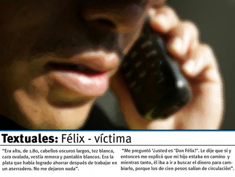 “Don Félix” tiene 84 años, es jubilado y contaba con unos ahorros guardados desde hace un tiempo, alrededor de 70 mil pesos. Este miércoles inescrupulosos estafadores se los arrebataron con una modalidad tan antigua como recurrente: el tristemente célebre “cuento del nieto”. Según pudo averiguar PRIMERA?EDICIÓN, se trata de la décima denuncia en el mes sobre hurtos de dinero bajo esa característica, casi todos en jurisdicciones del centro y zonas aledañas de Posadas. Es por ello que los investigadores no descartan la presencia de una banda dedicada a tal fin.En 2015 hubo una verdadera “oleada” de cuentos del nieto, tío y fraudes similares, todos con víctimas de la tercera edad. No se descarta que se trate de delincuentes foráneos, quienes vuelven sin tregua a atacar a jubilados y abuelos sin ningún tipo de contemplación. El supuesto empleado bancarioA primera hora de ayer, Félix recibió un llamado telefónico al fijo de su domicilio, ubicado en inmediaciones del club Pira Pytá. No lo sabía, pero estaba a punto de caer en el engaño.“Del otro lado de la línea una voz se hizo pasar por mi hijo, me dijo ‘papá, fijate que van a cambiar los billetes y no van a recibir más los de cien pesos. ¿Vos tenés guardado dinero?’, me preguntó. No sospeché nada extraño y le dije que sí, un poco más de 70 mil pesos. Entonces quien se hizo pasar por mi hijo me dijo ‘voy a ir con un amigo que trabaja en el banco para poder cambiar la plata, pero llevala cerca porque está apurado’”, contó el denunciante a este Diario.Félix, con sus 84 años sobre la espaldas, cayó en la treta. Pese a su edad, caminó hasta el punto de encuentro. “Yo le dije que mucho no podía caminar y quedamos de encontrarnos a una o dos cuadras de mi casa. Cumplí y fui, pero sin la plata, porque era peligroso andar por la calle con el dinero encima. En eso un hombre se me acercó, me preguntó ‘¿usted es Don Félix?’. Le dije que sí y entonces me explicó que mi hijo estaba en camino y que mientras tanto, él iba a ir buscar el dinero para cambiarlo, porque los de cien pesos salían de circulación. Fuimos a casa y entonces… se llevó todo… hasta mi arma de fuego, un revólver calibre 38 largo que tenía por cualquier cosa, para resguardo”, contó el abuelo entre lágrimas, desbordado por la bronca e impotencia tras lo sucedido. El delincuente que la víctima dejó ingresar a su domicilio, confiado en que era un enviado de su hijo, le dijo ser personal del Banco Nación. “Era alto, de 1.80 metros, de cabellos oscuros largo, tez blanca, cara ovalada, vestía remera y pantalón blancos”, indicó el damnificado, quien antes de jubilarse trabajó en un conocido aserradero. La investigación del caso está en manos de los efectivos de la comisaría seccional Decimosexta y de la Unidad Regional?I.?Las autoridades alertan a la población sobre la seguidilla y piden extremar recaudos.