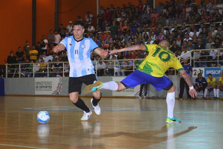 POSADAS. Una emocionante fiesta a todo color fue la que se vivió en la noche del martes en el polideportivo Ernesto “Fino” Gehrmann, donde Argentina dio el primer paso del “Desafío Mundialista” al superar por 3 a 2 a Brasil.Pese a la torrencial lluvia que abatió la zona, la familia salonera no quiso perderse tremendo espectáculo, se acercó en gran número y colmó las gradas de las instalaciones. Durante los distintos partidos que regaló la cartelera de la noche, el ambiente fue el mejor.En el arranque del cotejo, el combinado nacional mostró muchas dudas, pero rápidamente encontró el ritmo y creó las mejores situaciones para marcar. A los 9 minutos, Gastón Fernández escapó por el medio y sacó un fuerte remate para abrir la cuenta para los locales. Un minuto más tarde, Renzo Grasso presionó, robó un balón y sacó un potente tiro que venció la resistencia del arquero Danilo. El equipo de Avveduto pudo aumentar la ventaja, pero desperdició cuatro tiros libres de castigo. Por contrapartida y por este mismo medio, la Verdeamarela consiguió el descuento de la mano de su estrella, Thiago Negri, a los 18 minutos. Y, a los 19, tras un gran contragolpe Herminho colocó la paridad.La segunda parte fue menos intensa. Argentina siempre fue el que más propuso pero se topó con una férrea marca de Brasil y además no estuvo certero a la hora de definir.En el tramo final todo se volvió muy luchado y aunque la Albiceleste fue el que siempre intentó tomar las riendas, las llegadas no fueron tan constantes como en el inicio. A falta de 59 segundos para el final, Grasso, que fue uno de los que más sobresalió, anticipó, encaró y a pura potencia sacó el disparo que terminó en el fondo de la red y desató el festejo de todo el estadio.Fue un partido con todas las luces, donde los misioneros Rodrigo “Piru” Gómez y Sandro Antivero tuvieron minutos en cancha y cumplieron con una buena tarea.