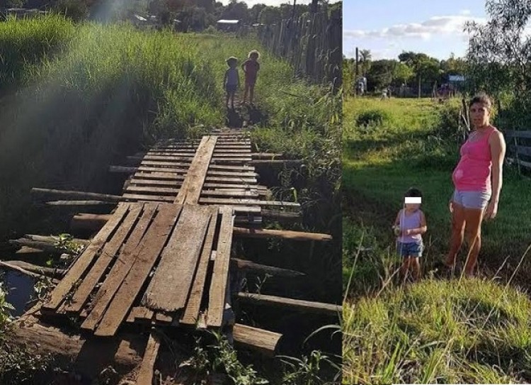 El "puente" de madera fue construido por los vecinos y es la única vía de paso para cruzar el arroyo. Los pobladores reclaman desde hace años que sea reparado o se construya uno nuevo, "pero nadie los escucha: ni la comisión vecinal, ni el intendente de Garupá", denunció el diputado Martín Sereno, quien participó de una convocatoria que hicieron los vecinos a raíz de lo ocurrido."De nosotros no se ocupa nadie, y Micaela pasó un momento muy feo porque cuando iba a cruzar el puente, se le engancharon las ojotas en el mismo barro que había antes de subir y cayó de panza contra las tablas cruzadas. Además cada vez que llamamos a una ambulancia, no quiere entrar porque los caminos están en muy mal estado. Entonces hay toda una serie de percances por no tener caminos que sean transitables, y no tener puentes", lamentan los habitantes del barrio.Agregaron que afortunadamente, la joven embarazada no sufrió consecuencias, pero "pudo haber sido grave por sus ocho meses de embarazo, y si hubiera caído al arroyo no queremos ni imaginar lo que podría haber pasado", dicen."Me asusté muchísimo"La joven detalló que ese día fue a comprar temprano, y cuando regresaba a su casa se resbaló y se cayó. "Es que ahí suele haber barro ñaú, y al resbalarme entre esas maderas, me caí de panza. Me asusté mucho porque tuve dolores impresionantes; y justo estaba sola porque mi marido y se había ido a trabajar. Un chico me ayudó y me acompañó hasta mi casa".Agradece que en el barrio los vecinos sean unidos y enseguida llamaron a la ambulancia, que cuando llegó no quería entrar por el desastre que es el camino. "Me pidieron que me acercara; pero no me podía ni levantar del dolor que tenía; hasta que después de insistir al chofer; el móvil se acercó todo lo que pudo y los vecinos ayudaron a los camilleros a trasladarme hasta la ambulancia que me llevó al hospital. Por suerte estaba todo bien, me dijo el doctor que la placenta evitó que el golpe llegara al bebé, y me dio unos días de reposo. Me asusté demasiado", repite Micaela.En peligroEl riesgo del puente es recurrente por lo inseguro. No solo para el caso puntual de una embarazada, sino también para personas mayores y los chicos, porque es paso obligado para cuando van a la escuela, para ir a comprar, a la sala de salud y para tomar el colectivo.En La Tablada viven muchas familias y todas reclaman que se haga un puente más seguro porque hay muchas personas mayores que corren peligro. "Cualquiera que se resbale se puede lastimar feo. Hasta para ir a la sala de salud hay que pasar por ahí, porque es un paso obligado. Además también tienen que arreglar urgentemente la calle porque no puede ser que ni siquiera pueda entrar la ambulancia cuando hay una emergencia", explica otro de los vecinos.