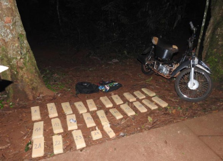 Según fuentes policiales, mientras los efectivos realizaban recorridos preventivos en la ciudad, pudieron observar a un individuo que circulaba en una motocicleta cuando, repentinamente, ingresó en un sendero adentrándose en la vegetación, lo que despertó sospechas en los uniformados.A raíz de esto, los agentes se adentraron en el monte, unos metros más adelante hallaron la moto abandonada. De inmediato comenzaron a realizar un rastrillaje en el lugar y hallaron dos mochilas con paquetes rectangulares.Al realizar el narcotest del contenido de los paquetes, éste arrojó positivo para marihuana. El peso de los paquetes fue de más de 20 kilos. Del hombre que conducía la moto no hay rastros.En la causa interviene el Juzgado Federal de Eldorado.