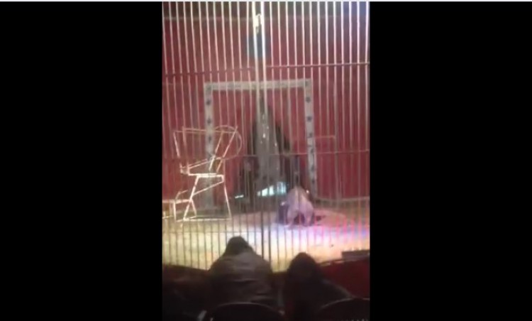 Un domador fue atacado atacado en un circo francés por un león en mitad de un espectáculo y delante del público. Según se puede ver en un video grabado por uno de los espectadores, el público comenzó a gritar cuando comenzó el ataque , que se intenta ocultar con la máquina de humo del espectáculo.Según "Le Parisien", la víctima es una persona de 30 años que fue atacada de repente por el violento animal y que necesitó que sus compañeros entraran en el escenario para ayudarle rociando al león para que diera marcha atrás.Cuando el hombre consigue levantarse, se le ve cómo tropieza agarrándose la garganta, aunque no ha trascendido su estado de salud a pesar de que fue trasladado en helicóptero hasta el hospital, publica A3.