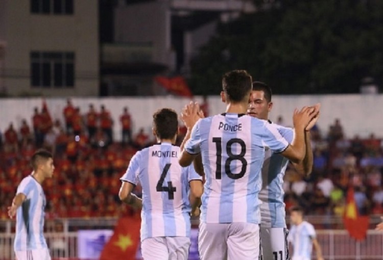El seleccionado argentino sub-20 venció este miércoles a su similar de Vietam por 4 a 1, en un cotejo amistoso preparatorio para su participación en la Copa del Mundo de la categoría, que se jugará en Corea del Sur entre el 20 de mayo y el 11 de junio.Los tantos del seleccionado que dirige Claudio Ubeda fueron obras de Exequiel Ponce (jugador del Granada, de España) a los 29 minutos, Brian Mansilla (Racing Club) a los 48 e Ignacio Méndez (Argentinos Juniors), quien entró en el segundo tiempo, a los 63 y 88.El gol de Vietnam lo marcó a los 90 minutos Ha Duc Chinh. El cotejo se jugó en el estadio Thong Nhat, en la ciudad Ho Chi Minh, y el domingo Argentina jugará ante el Sub-23 vietnamita en Hanoi.Argentina formó con Franco Petroli (River); Gonzalo Montiel (River), Foyth, Marcos Senesi (San Lorenzo) y Milton Valenzuela (Newell’s Old Boys); Palacios, Santiago Colombatto (Cagliari, de Italia), Tomas Belmonte (Lanús) y Mansilla ; Ponce.Ubeda determinó que tuvieran descanso dos de las máximas figuras del equipo como Santiago Ascacibar, mediocampista central de Estudiantes, y el delantero de Racing Lautaro Martínez, siendo muy positivo el desempeño de Ménedez quien reemplaza a Ezequiel Barco, que no fue cedido por Independiente.En los dos primeros goles la asistencia fue de Ezequiel Ponce, el jugador del Granada español, para Ponce y Mansilla, este último de cabeza. El tercer tanto fue con otra cabezazo, esta vez de Méndez y el cuarto lo marcó el mismo jugador de Argentinos tras muy buena jugada del defensor de Estudiantes Juan Foyth.Argentina, campeón mundial de la categoría en seis ocasiones (1979, 1995, 1997, 2001, 2005, 2007) debutará el próximo 20 ante Inglaterra en Jeonju, el 23 tendrá como rival a Corea del Sud en el mismo escenario y el 26 termina su participación en el Grupo A ante Guinea en Suwon.Fuente: Télam