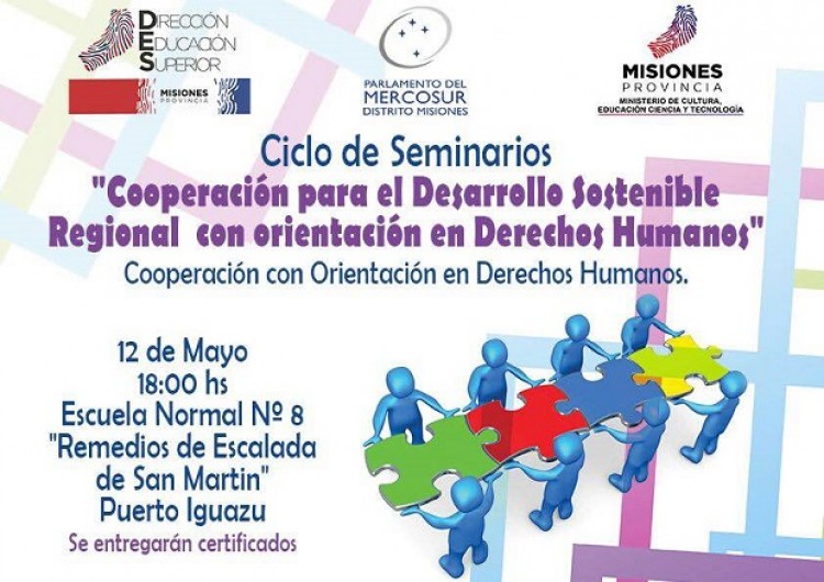 El taller “Cooperación con orientación en Derechos Humanos” está destinado a alumnos de los últimos años de Institutos de Formación Docente, organizado por el Parlasur, Distrito Misiones, en articulación con la Dirección de Educación Superior del CGE.La jornada contará con la presencia de la presidenta de la Comisión de Derechos Humanos y Ciudadanía del Parlasur, Cecilia Britto y asistirán estudiantes de la Extensión Áulica de Puerto Iguazú, de la Normal 9 de Wanda y del Instituto Sagrada Familia. A su vez concurrirán estudiantes del BOP 111 Tekoa Fortín Mbororé y están invitados alumnos y docentes de la Unila de Foz de Iguazú.Cabe destacar que el taller, que se da en el marco del Ciclo de Seminarios denominado “Cooperación para el Desarrollo Sostenible Regional con Orientación en Derechos Humanos”, se dicta en la modalidad workshop donde los asistentes encontrarán un espacio de diálogo para reflexionar acerca de la importancia de la cooperación en materia de Derechos Humanos desde el la comunidad educativa hasta el ámbito internacional.Este ciclo de seminarios es posible gracias a un convenio con el Poder Ejecutivo, a través del gobernador Hugo Passalacqua; y cuenta con la contribución de la ministra de Educación, Ivonne Aquino, y del presidente del CGE, Mauricio Maidana.