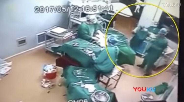 Un video de las cámaras de seguridad de un hospital de China muestra el insólito momento en el que un médico y una enfermera protagonizan una pelea en el quirófano. El cirujano acusó a la enfermera, con quien mantiene una relación sentimental, de saltarse el protocolo durante la intervención. Afortunadamente el paciente ya no estaba en la sala de operaciones. En las imágenes, virales en las redes sociales chinas, parece que la mujer golpea al doctor primero y éste le responde golpeándole en la cabeza.La pelea dura varios segundos hasta que ella se derrumba en el suelo, explica el sitio T5. El hospital de condado de Lankao en la provincia de Henan, centro de China, explicó que nadie resultó gravemente herido y que todo ha quedado resuelto como una simple disputa personal