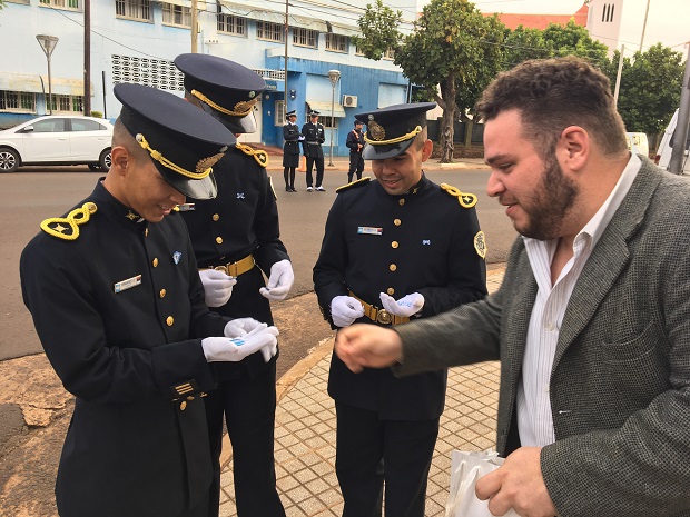 El personal del Departamento de Admisión e Ingreso de la UCP, acompañando las actividades del Mes de la Patria, acercó a los vecinos de Posadas pines escarapela a instituciones públicas como la Municipalidad, el Hospital Escuela Dr. Ramón Madariaga y el Banco de Sangre de la Provincia.Asimismo se visitaron los colegios Roque González, San Basilio Magno, Martín de Moussy; los institutos educativos Mariano Moreno, Madre de la Misericordia, Horacio Quiroga, Posadas Educa, Santa María, Posadas, Inmaculada Concepción, Epet 2, Lisandro de la Torre, CEP 4, entre otros. La UCP también acompaño a sus alumnos expositores en el Congreso #reCrear2017, oportunidad en la que se obsequiaron pines a los participantes de dicho evento. Las actividades del Departamento de Admisión e Ingreso por el Mes de la Patria dieron inicio el 18 de mayo, Día de la Escarapela, y se extendieron hasta este miércoles 24 en horas de la mañana.