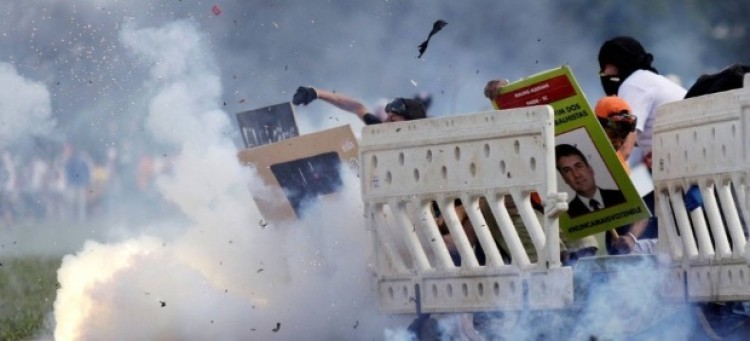 Manifestantes realizan barricadas y se enfrentan con la policía en la Explanada de los Ministerios, como se denomina a la región de Brasilia que alberga a los ministerios y las sedes de los tres poderes del Estado. Frente al Congreso Nacional, en tanto, miles de personas exigen la renuncia de Temer. Las movilizaciones también apuntan a denunciar la reforma del sistema de jubilaciones y la flexibilización de la legislación laboral, tramitadas en el Congreso. La tensión en Brasilia se sintió el martes en la sesión de una comisión del Senado sobre la reforma laboral, que terminó en una trifulca generalizada, con gritos de “¡Fora Temer!”. La parálisis de las reformas preocupan en cambio a los mercados, que operan con prudencia desde la semana pasada, después de una primera reacción que el jueves hundió a la Bolsa y provocó una fuerte devaluación del real frente al dólar.Temer en la cuerda flojaEl presidente Michel Temer sufrió hoy otro duro revés con la renuncia de su cuarto asesor especial, mientras miles de personas se concentraron en Brasilia para participar de las manifestaciones en las que reclamaron la renuncia del mandatario, envuelto en un escándalo gigantesco de corrupción, y la anticipación de elecciones generales directas.La crisis brasileña se devoró al cuarto asesor del presidente Temer, Sandro Mabel, dirigente del Partido del Movimiento de la Democracia del Brasil (PMDB), quien dejó el cargo de asesor especial por cuestiones personales, según una carta enviada a la prensa.La renuncia ocurre en medio de frenéticas negociaciones entre los partidos del oficialismo de centroderecha para encontrar un candidato a reemplazar a Temer en una elección indirecta a realizarse por el Congreso que debe ser convocada, cuando el poder se encuentra acéfalo, por el presidente de la Cámara de Diputados.La salida de Mabel se produjo luego de que el martes fuera detenido otro asesor especial del presidente, Tadei Filippelli, exvicegoberandor de Brasilia acusado de participar de dsevíos en la construcción del estadio Mané Garrincha, sede del Mundial 2014 y donde jugó en cuartos de final Argentina contra Bélgica.El diputado Rodrigo Rocha Loures, también asesor de Temer, dejó el cargo de asesor luego de haber sido acusado por el Supremo Tribunal Federal junto con el mandatario y el senador Aecio Neves de obstruir la operación Lava Jato y negociar sobornos con la empresa frigorífica JBS.Video: UOL Mais (Brasil)