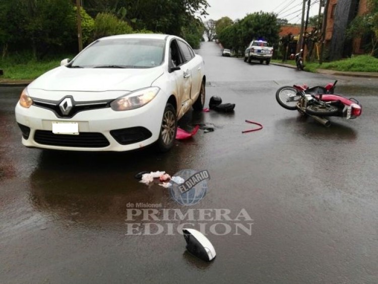 Un motociclista, que aún no fue identificado oficialmente por la Policía, protagonizó un incidente vial de proporciones durante la siesta de este martes en Posadas, al chocar -por motivos que se investigan con un Renault Fluence que circulaba por calle Sebastopol en sentido hacia el centro de Posadas, en cercanías de la avenida Almirante Brown.Como consecuencia del impacto, además de los importantes daños materiales registrados en ambos vehículos, el conductor de la moto terminó con graves lesiones que determinaron su traslado al hospital Madariaga, desde donde se aguarda el correspondiente parte médico.En el lugar tuvo que trabajar también personal de bomberos, para rescatar al motociclista de entre las ruedas del auto. Fotos: M.Fedorischak