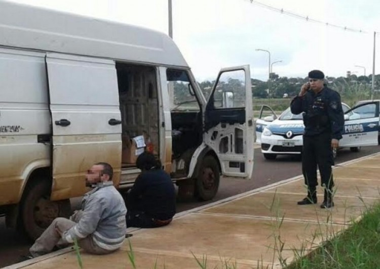 Este jueves a las 16:00, efectivos del Comando Oeste arrestaron a Cristian Agustín R. (29) y a Alfredo Roque S. (27), en inmediaciones del Acceso Oeste, más precisamente a la espalda del hospital Dr. Baliña.Además, se incautó una camioneta Iveco tipo furgón, donde se halló alrededor de 400 gramos de marihuana, una balanza, dos cigarrillos artesanales, bolsitas de polietileno y cerca de 11 mil pesos. Los dos supuestos "repartidores de alimentos" fueron puestos a disposición de la justicia federal junto a lo secuestrado.