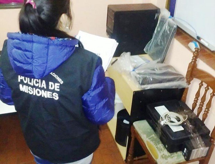 La Dirección de Investigaciones Complejas (Policía de Misiones) allanó una vivienda en Parque Adam, sita en la calle Misiones, por orden del juzgado de Instrucción Nº 7 de Posadas a raíz de un exhorto del Juzgado de la localidad correntina de Ituzaingó donde se originó la investigación de la causa.En el marco del procedimiento los investigadores secuestraron en el inmueble tres notebooks, una impresora multifunción, una CPU marca Súper Power y documentos relacionados al hecho que se investiga.