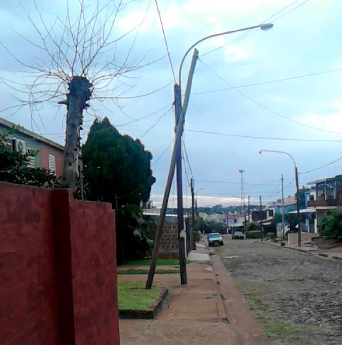 Vecinos de dos cuadras de la chacra 138 de esta ciudad hicieron público el temor que sienten a causa de un poste de tendido telefónico que se pudrió y se desmoronó sobre los cables de alta tensión.Pese a que la situación ya lleva más de seis meses y fue denunciada en repetidas ocasiones, y ante las autoridades de la compañía telefónica y Emsa, pero la solución todavía no llegó.  Jorge, vecino de la manzana 5, área de mayor peligro, se mostró ofuscado por la falta de respuesta de ambas empresas a quienes acusó de “lavarse la manos” y deslindar responsabilidades hacia uno y otro lado. “En la manzana 7 del barrio hay un poste de Telecom que está podrido, a punto de caer y sostenido por los cables de Emsa y si caen los dos juntos y van a hacer un daño bastante grande. Los vecinos hicimos el reclamo y hasta ahora no nos atendieron. La situación lleva más de 6 meses y tememos que con algún temporal se caigan del todo”, dijo el hombre a PRIMERA EDICIÓN. “No es difícil la solución. Se debe reemplazar el poste por otro que esté bueno, pero nos dicen ‘ya vamos’ a ir a ver”. Sin embargo hasta ahora no aparecieron y el peligro es real”, se indignó el hombre.