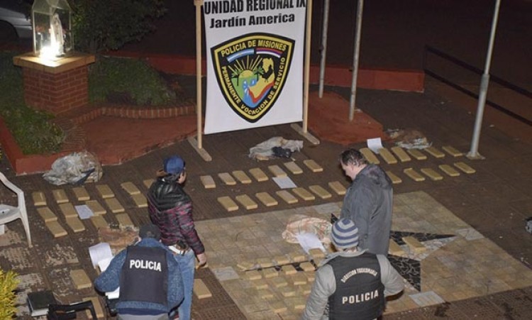 Como parte de la seguidilla de procedimientos enmarcados en el Operativo Combinado Abierto de Frontera Misiones (OCAF-MIS), la Policía de Misiones dio ayer con otro “búnker” donde se presume que sistemáticamente se reacondicionaba el estupefaciente para su transporte.Se trata de una casa -cuya propietaria no estaba pero ya fue identificada- ubicada en el barrio 58 Viviendas de Jardín América y que fue allanada con la orden judicial correspondiente.En una de las habitaciones los policías hallaron cinco bultos precintados en cuyo interior había 92 paquetes de marihuana. El siempre efectivo “Magnum” halló más “ladrillos” ocultos cuidadosamente en otra habitación.Ya con la intervención de Toxicomanía se prosiguieron las diligencias correspondientes y el pesaje arrojó 102,330 kilos. El aforo del total incautado -droga y material logístico- asciende a dos millones de pesos.u000A