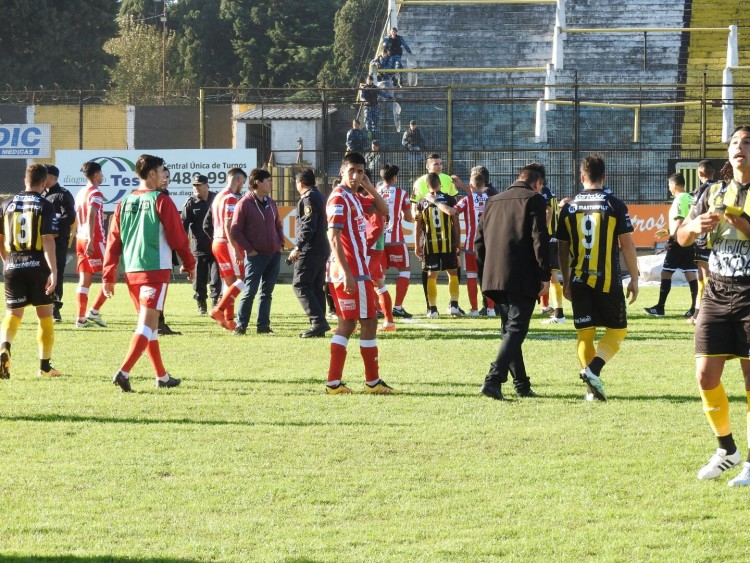 El árbitro José Carreras notó que comenzaron a golpearse en una de las populares que ocupaba la parcialidad local, detuvo el juego y al ver que la situación no lograba calmarse, decidió suspenderlo. Mientras un grupo de hinchas pacíficos "gritaban que se vayan todos", los bandos enfrentados del "Mirasol" se agredían dentro de la tribuna, hasta que lograron ser desalojados por la Policía. Sin embargo, en las afueras del estadio "Fragata Sarmiento", los incidentes no cesaron y hubo un cruce entre efectivos de la Bonaerense con los hinchas.Fuente: Agencia de Noticias NA