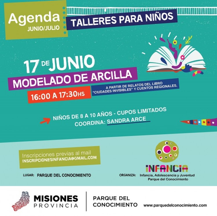 Como parte de los talleres destinados a niños y jóvenes, y abarcando diferentes ramas del arte, este sábado se realizará uno de Modelado de Arcilla en el que la construcción de las piezas tendrá como eje inspirador narraciones de historias, que serán un convite para dar forma y crear diversas piezas en arcillas que serán una historia nueva de palabras y arcilla.Como motivadores de las mismas, se usarán relatos del libro “Ciudades Invisibles” de Ítalo Calvino, además de una selección de cuentos regionales. Destinado a niños de 8 a 10 añosCupo: 20 niñosInscripción previa a [email protected]: Sandra Arce y equipo de Artes del Fuego